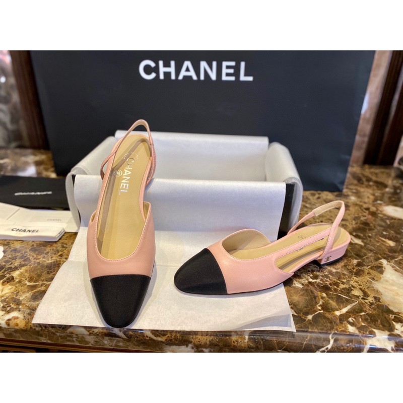 • [팬더샵] 샤넬 배색 CC 로고 샌들 로우힐 슬링백 Chanel
