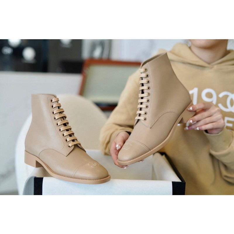 • [팬더샵] 샤넬 CC 스티치 로고 레더 레이스업 앵클 부츠 3컬러 Chanel