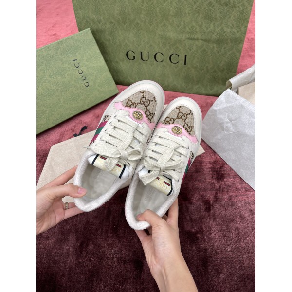 [WZ1] 구찌 스크니너 GG 로고 큐빅 더티 스니커즈 핑크 (한 치수 더 크다) Gucci