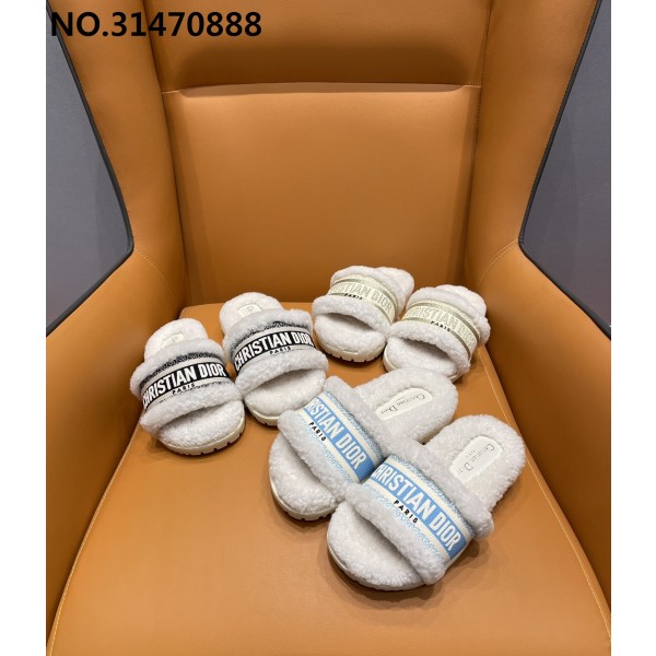 [A1] 디올 모노그램 자수 털 슬리퍼 연컬러 2cm 3컬러 Dior
