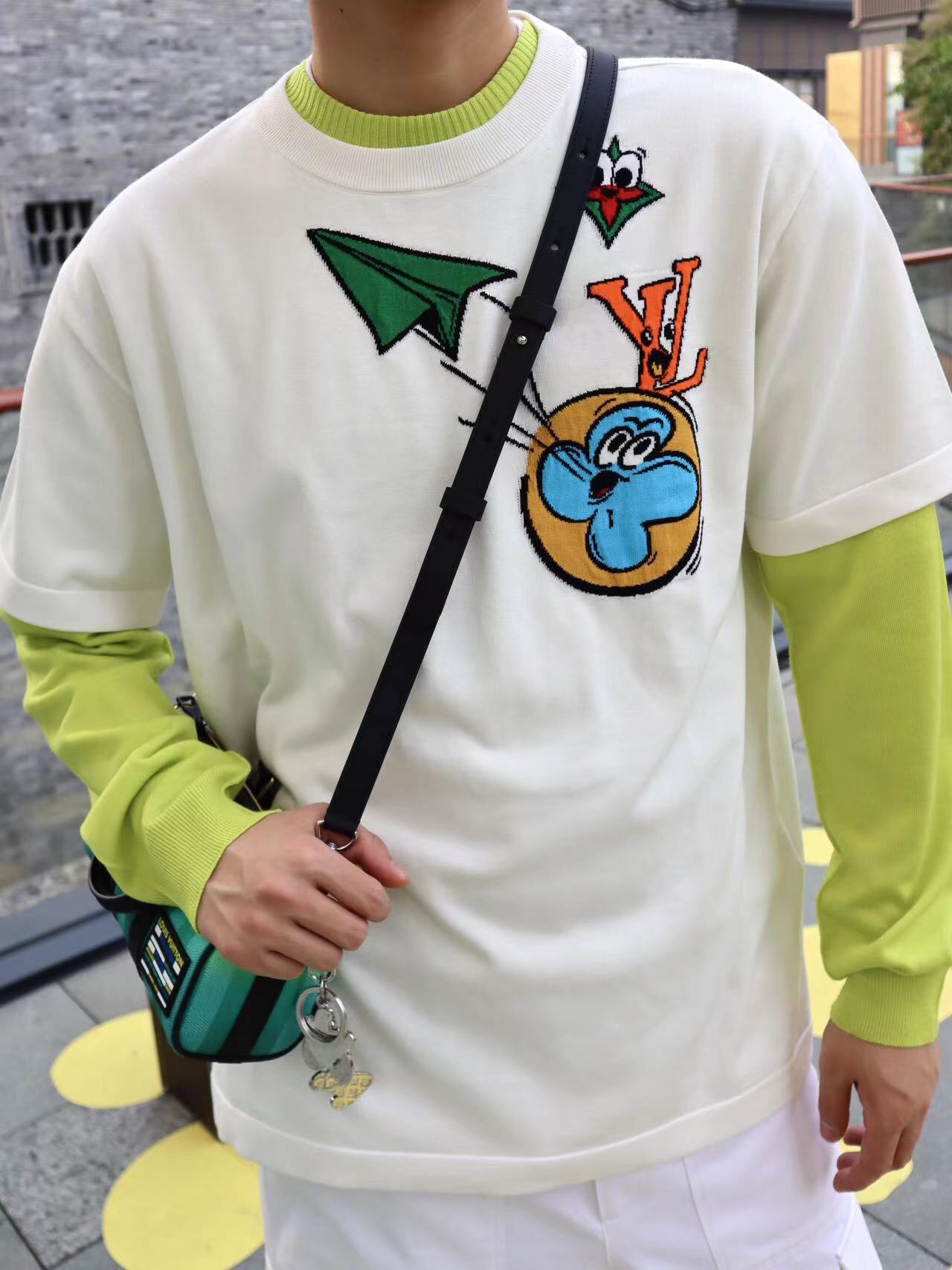 • [잔디집1] 루이비통 COMICS 니트 반팔티 화이트 LOUIS VUITTON