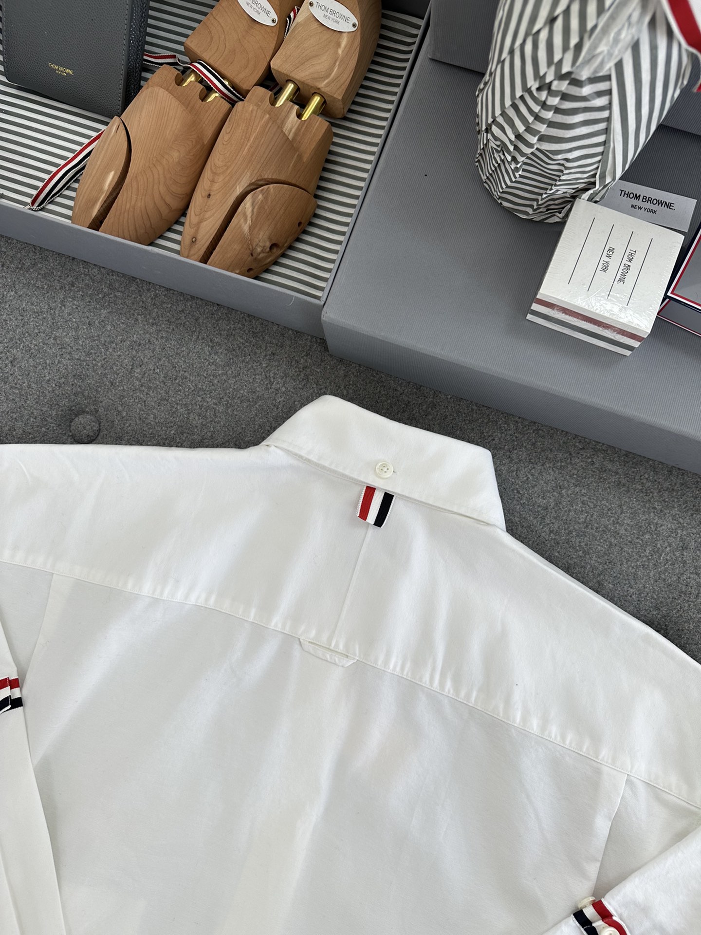 • TJ공장 톰브라운 OS 순면 완장 옥스퍼드 긴팔 셔츠 화이트 Thombrowne