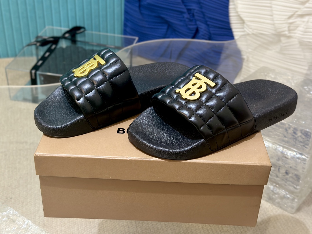 [152] 버버리 골드 TB 퀼팅 슬리퍼 블랙 burberry