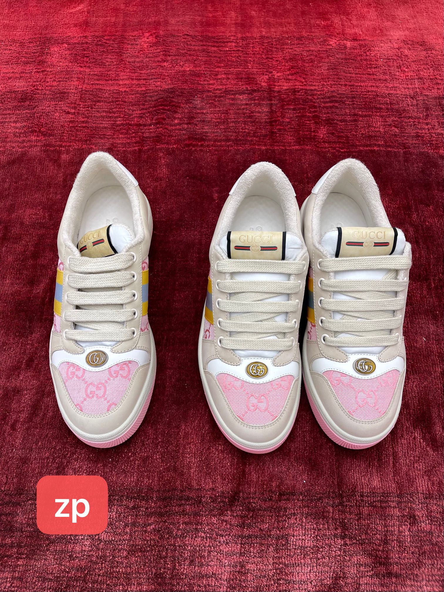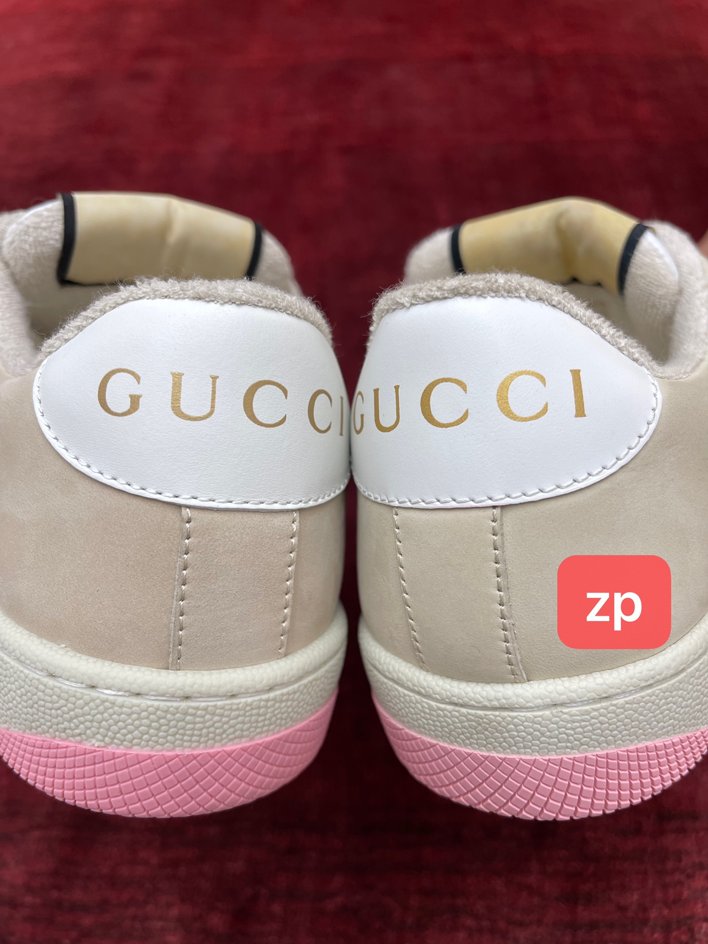 • [WZ1] 구찌 스크니너 핑크 GG로고 자수 더티 스니커즈 (한 치수 더 크다) Gucci