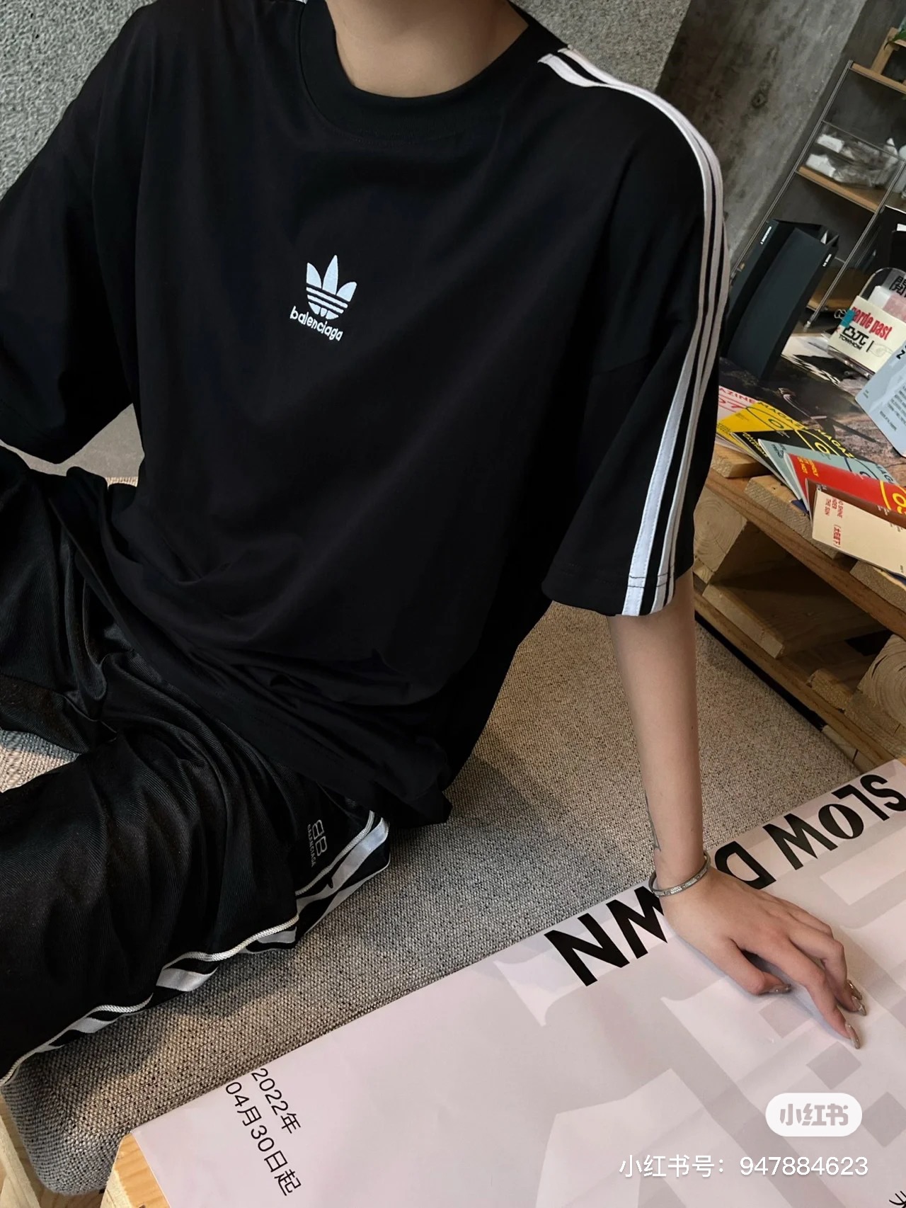 • V공장 발렌시아가 아디다스 앞 로고 자수 반팔티 블랙 balenciaga adidas
