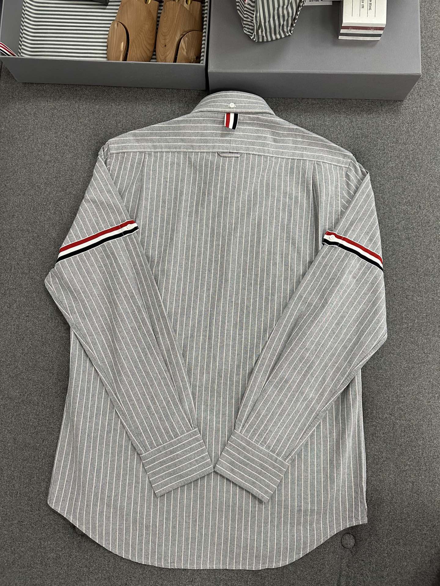 • TJ공장 톰브라운 순면 스트라이프 옥스퍼드 긴팔 셔츠 그레이 Thombrowne