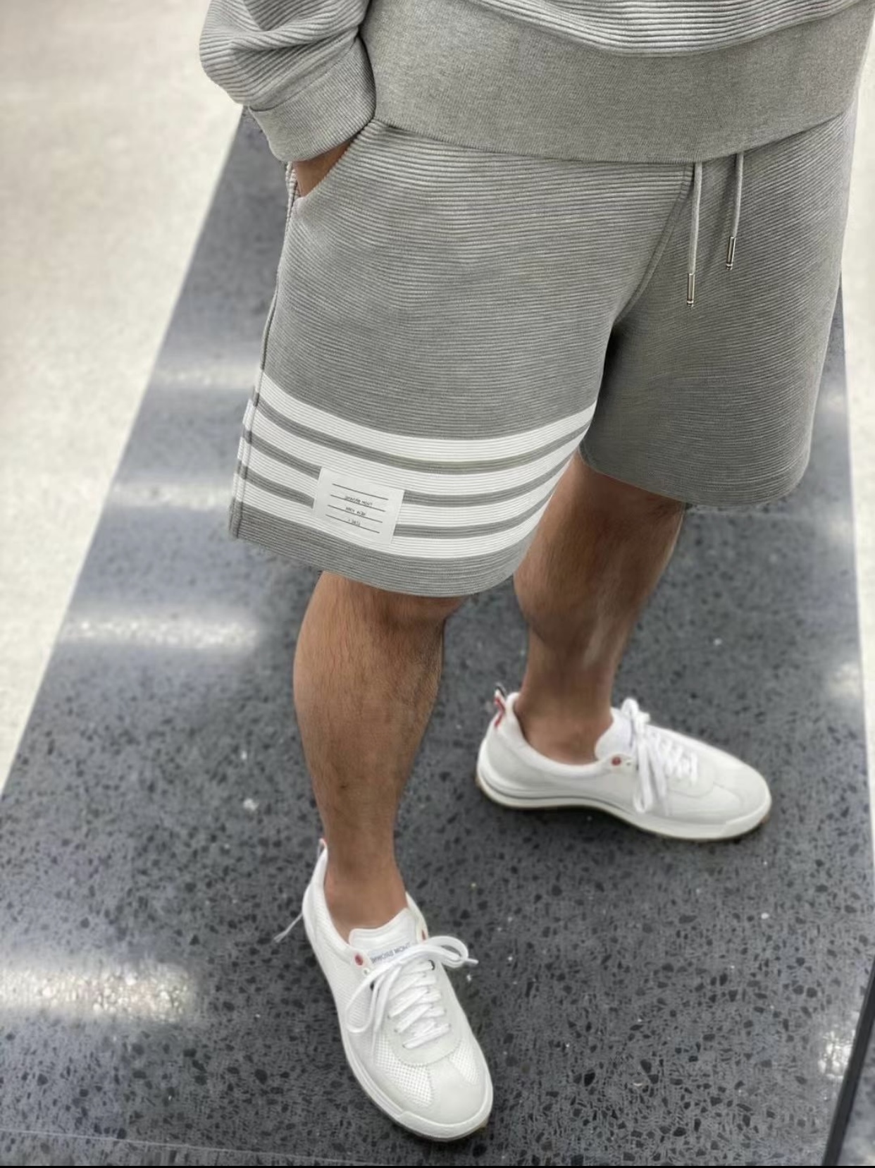 • TJ공장 톰브라운 스트라이프 완장 반바지 그레이 Thombrowne
