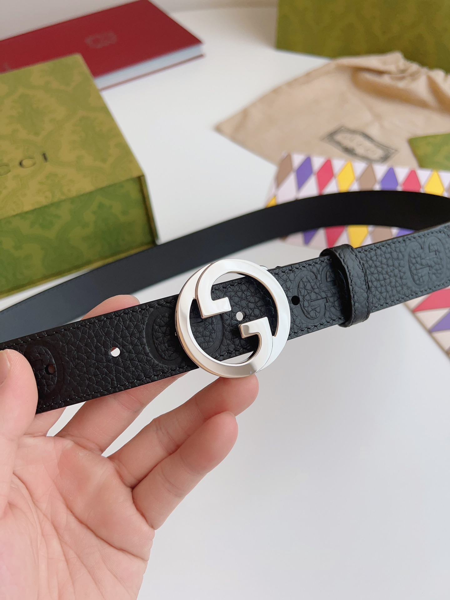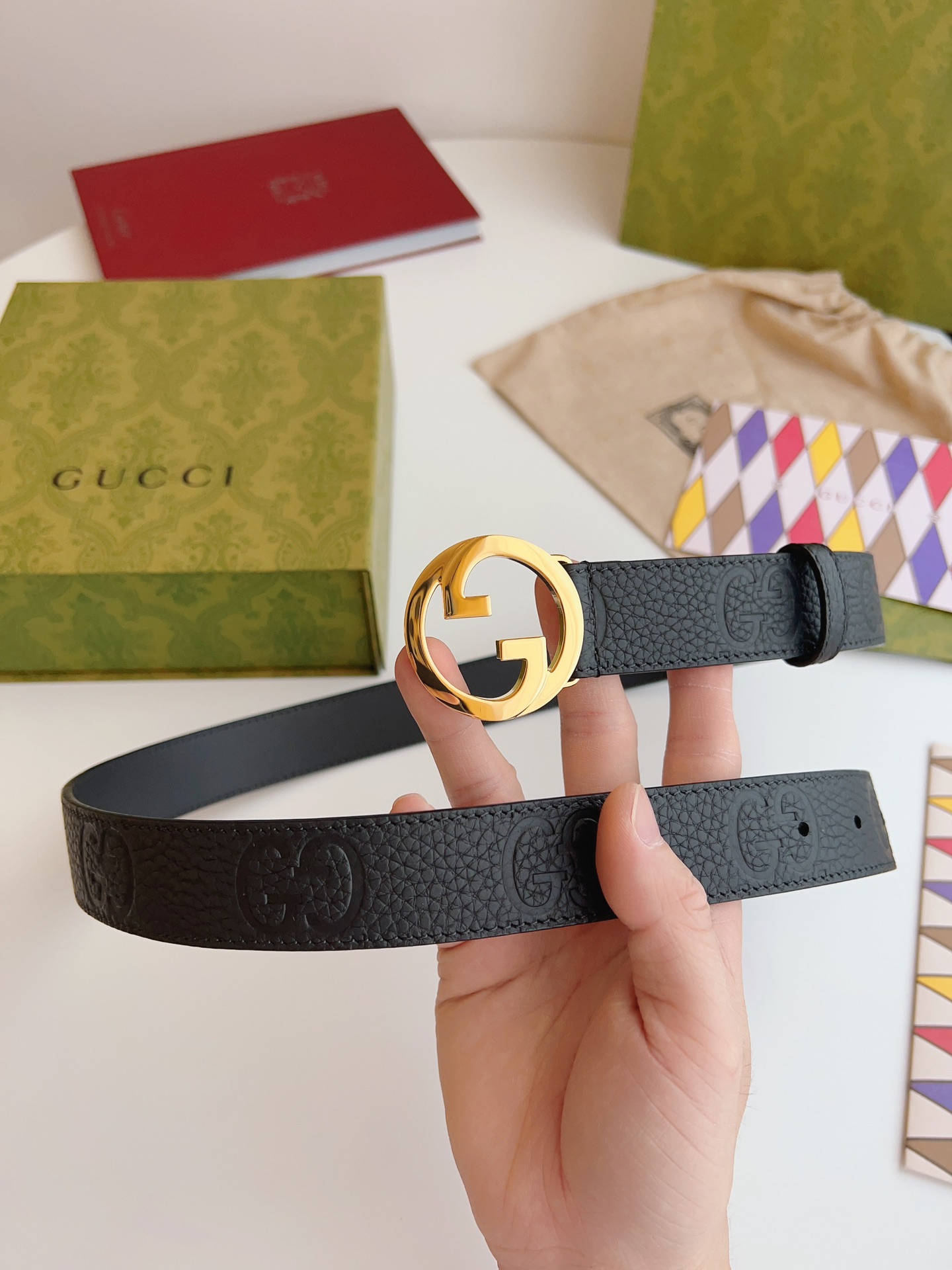 • 구찌 스퀘어 버클 엠보 GG로고 3.5cm 벨트 2컬러 Gucci