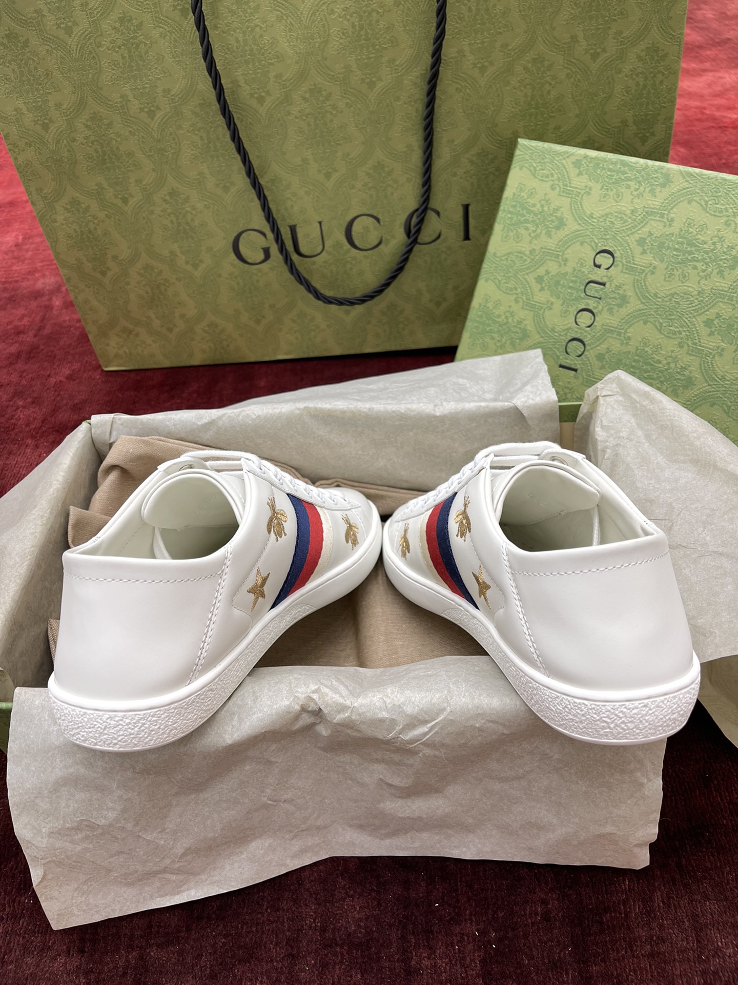 • [WZ1] 구찌 여성용 별 꿀벌 자수 스니커즈 화이트 (한 치수 더 크다) Gucci
