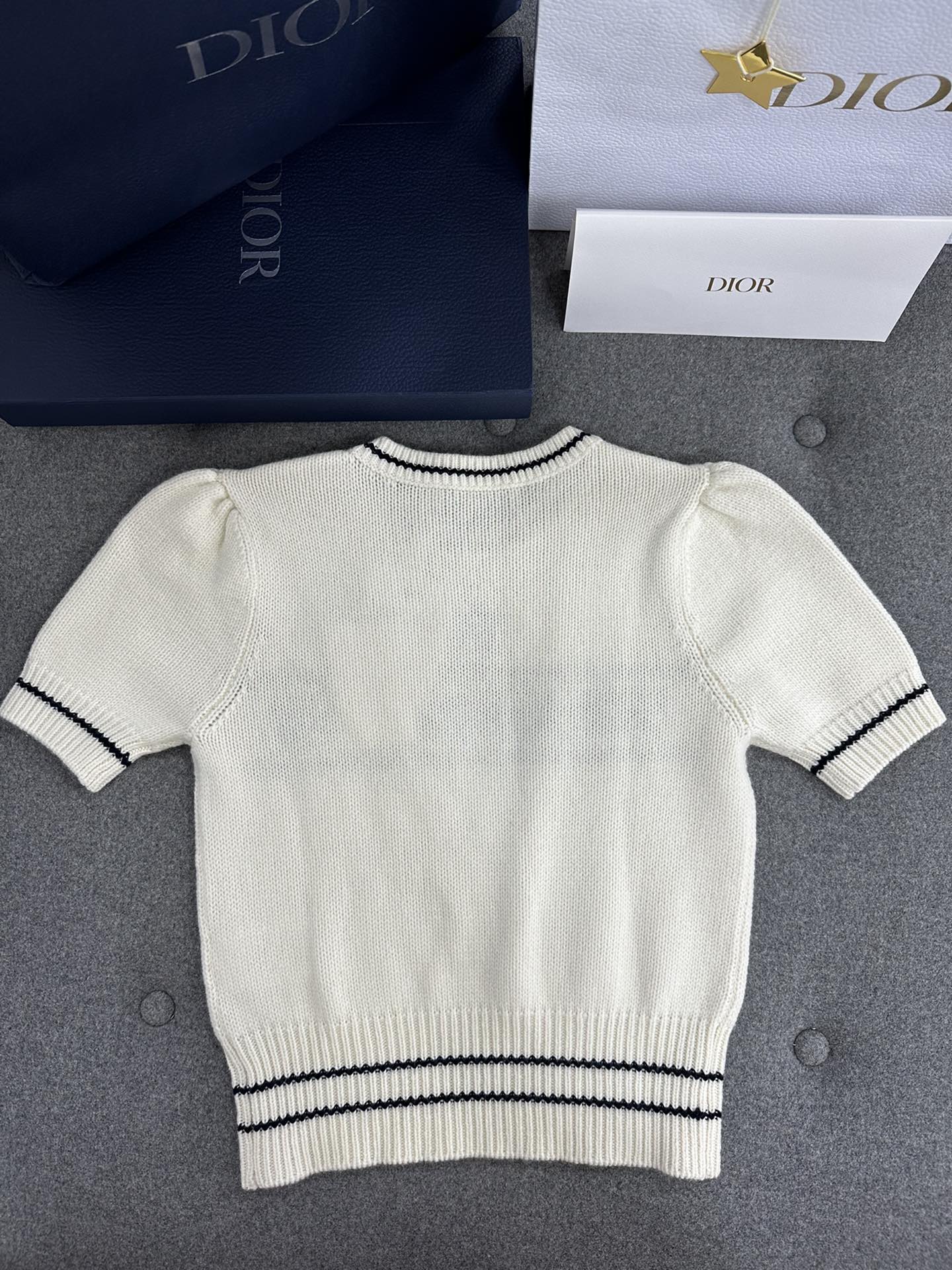 TJ공장 디올 크리스천 별 자카드 니트 반팔티 아이보리 여성용 Dior