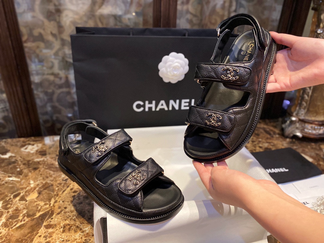 [팬더샵] 샤넬 클래식 리치 무늬 CC 로고 샌들 블랙 Chanel