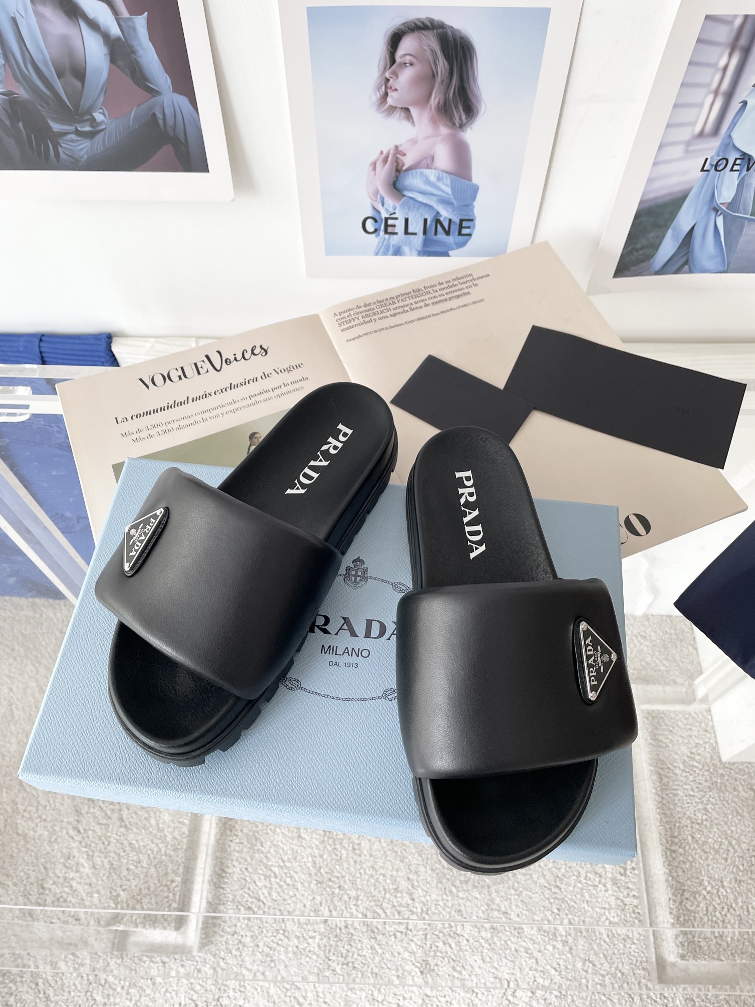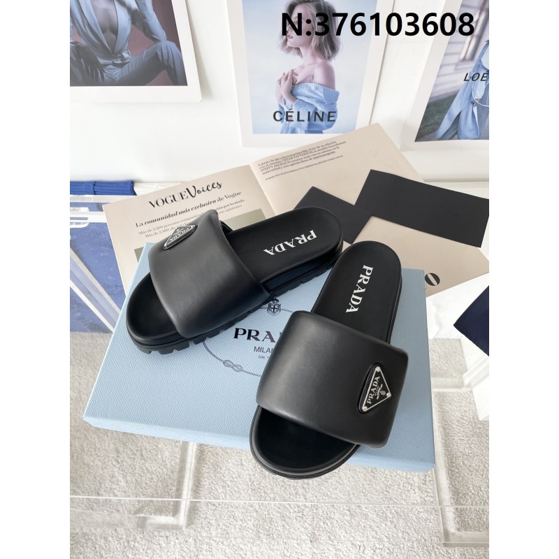 • [327] 프라다 세모 모노그램 양가죽 슬리퍼 블랙 Prada