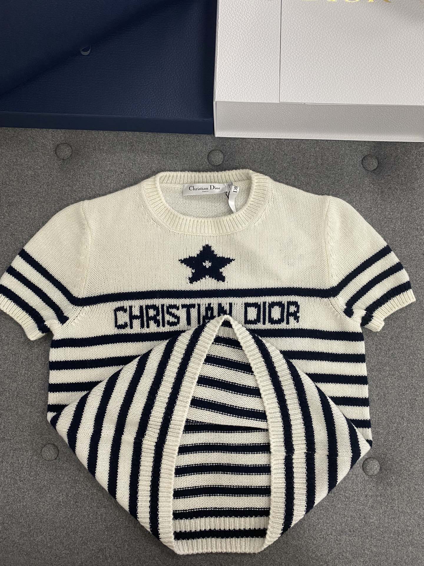 • TJ공장 디올 Dioriviera 마리니에르 스트라리프 니트 반팔티 아이보리 Dior