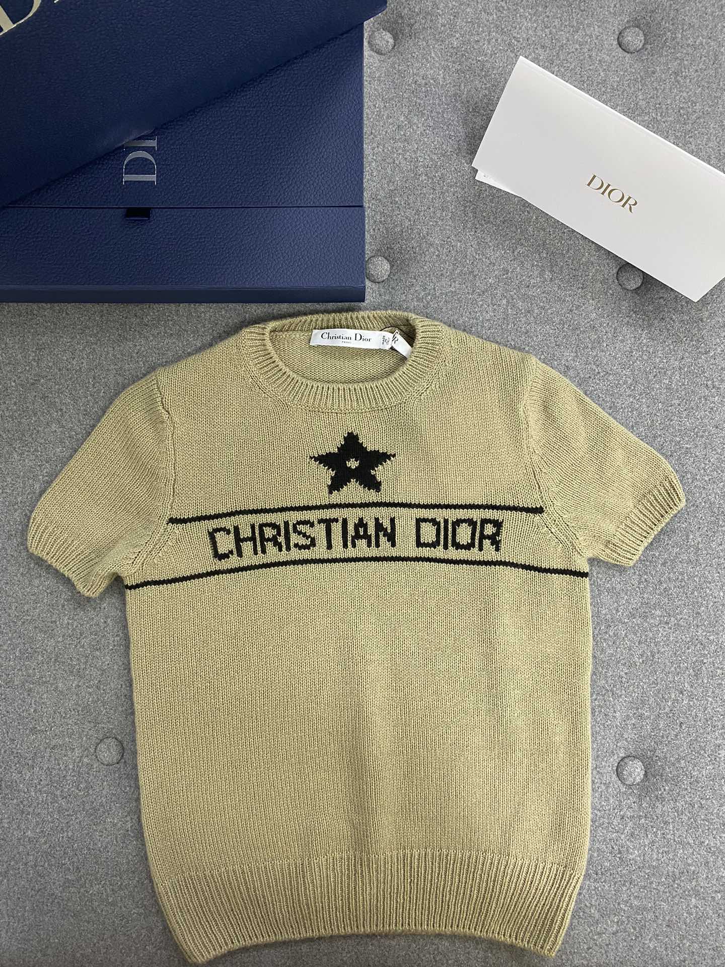 • TJ공장 디올 여성용 캐시미어 크리스천 별 니트 반팔티 Dior
