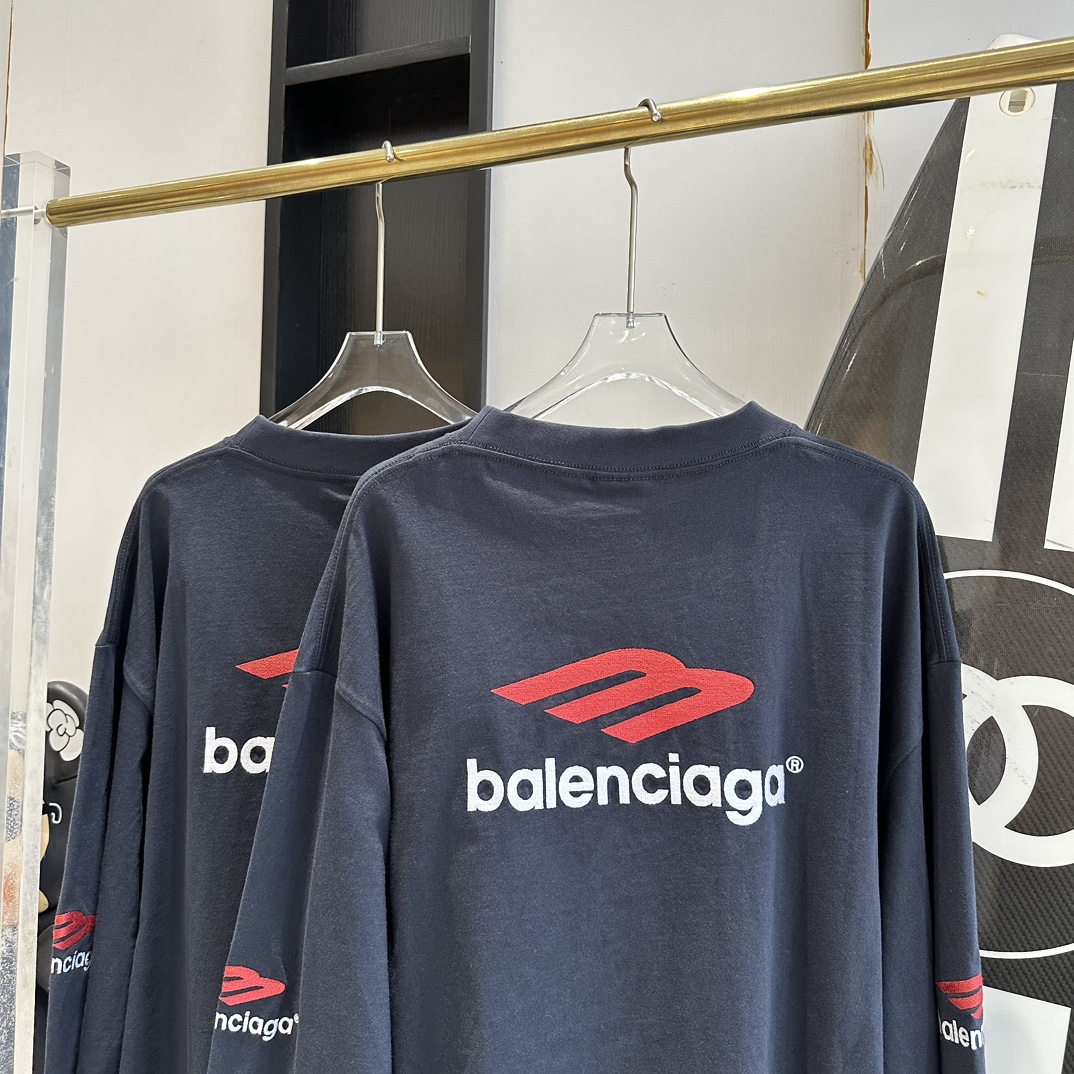 • V공장 발렌시아가 모노그램 3B 자수 긴팔티 블랙 balenciaga