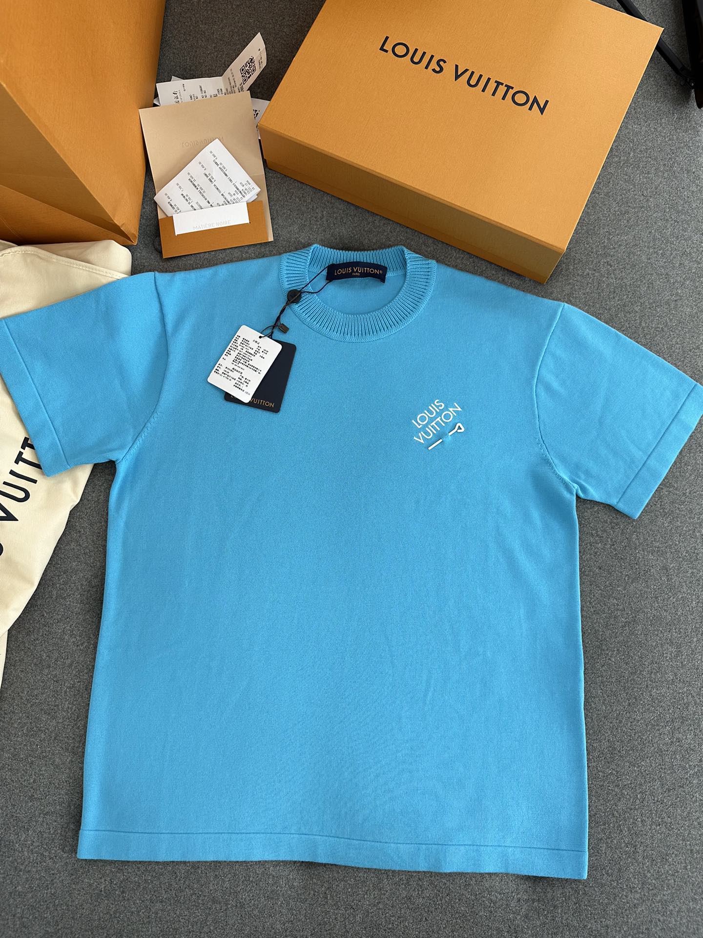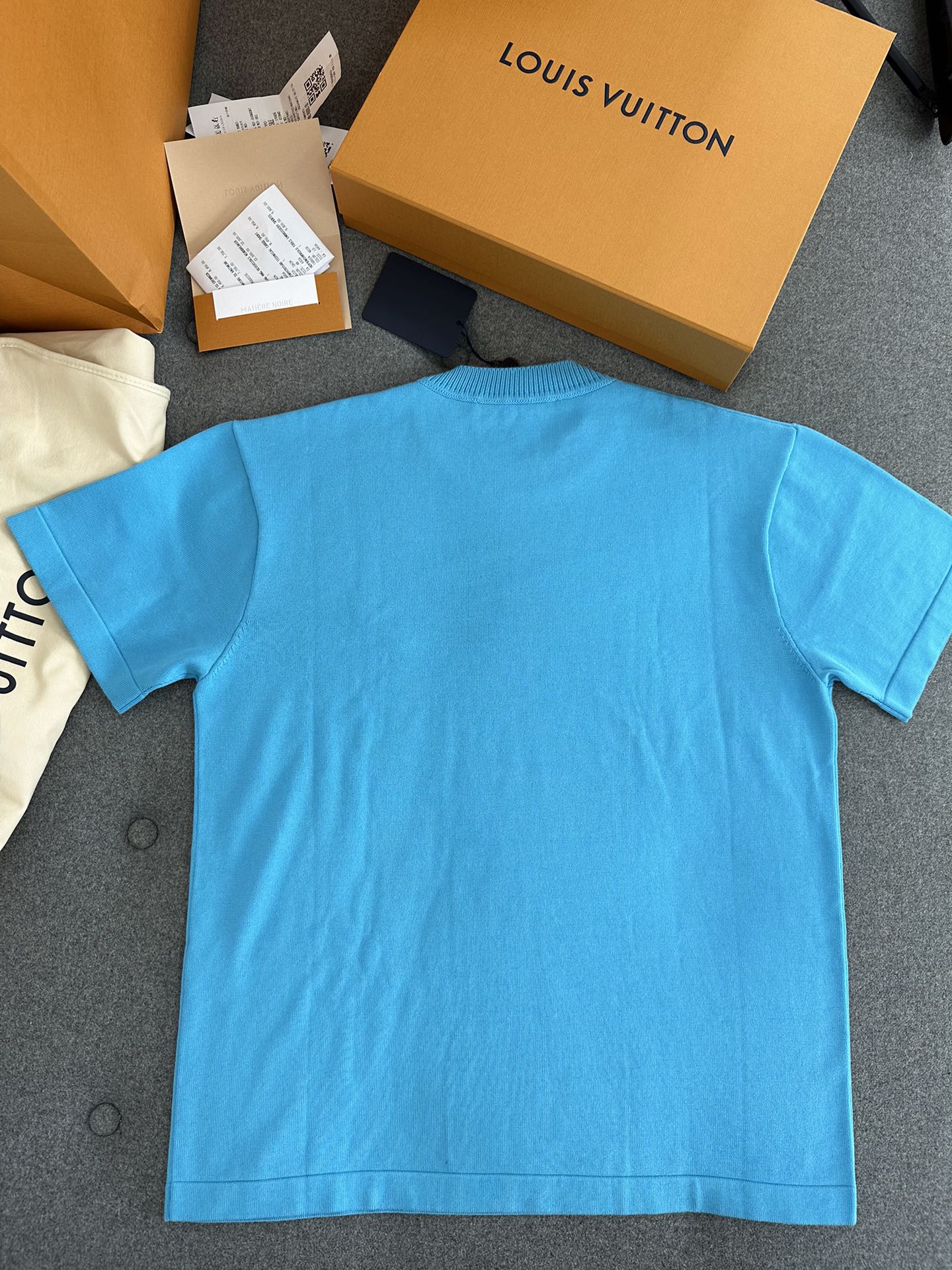 • TJ공장 루이비통 흰색 모노그램 옷핀 니트 반팔티 블루 LOUIS VUITTON