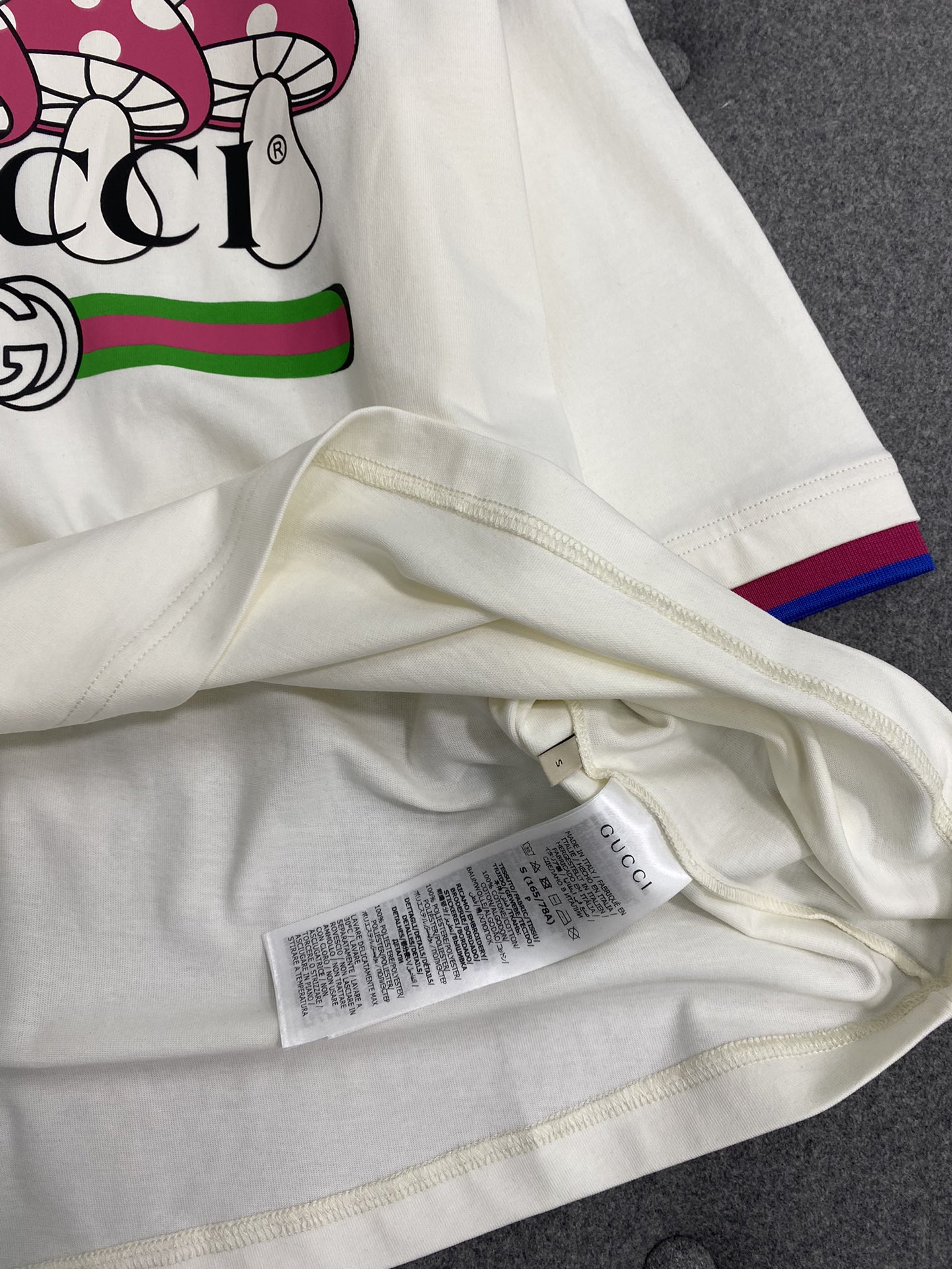 • TJ공장 구찌 핑크 버섯 배색 반팔티 아이보리 Gucci