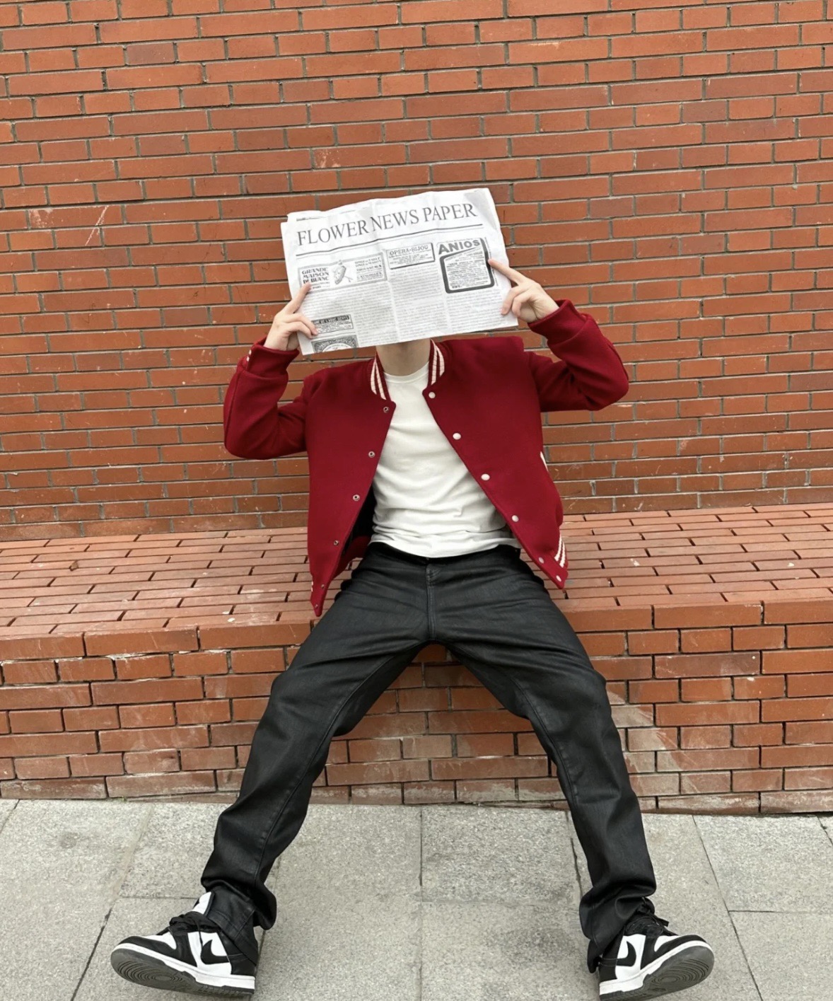 • [잔디집2] 생로랑 뒷면 모노그램 캐시미어 혼방 야구 자켓 레드