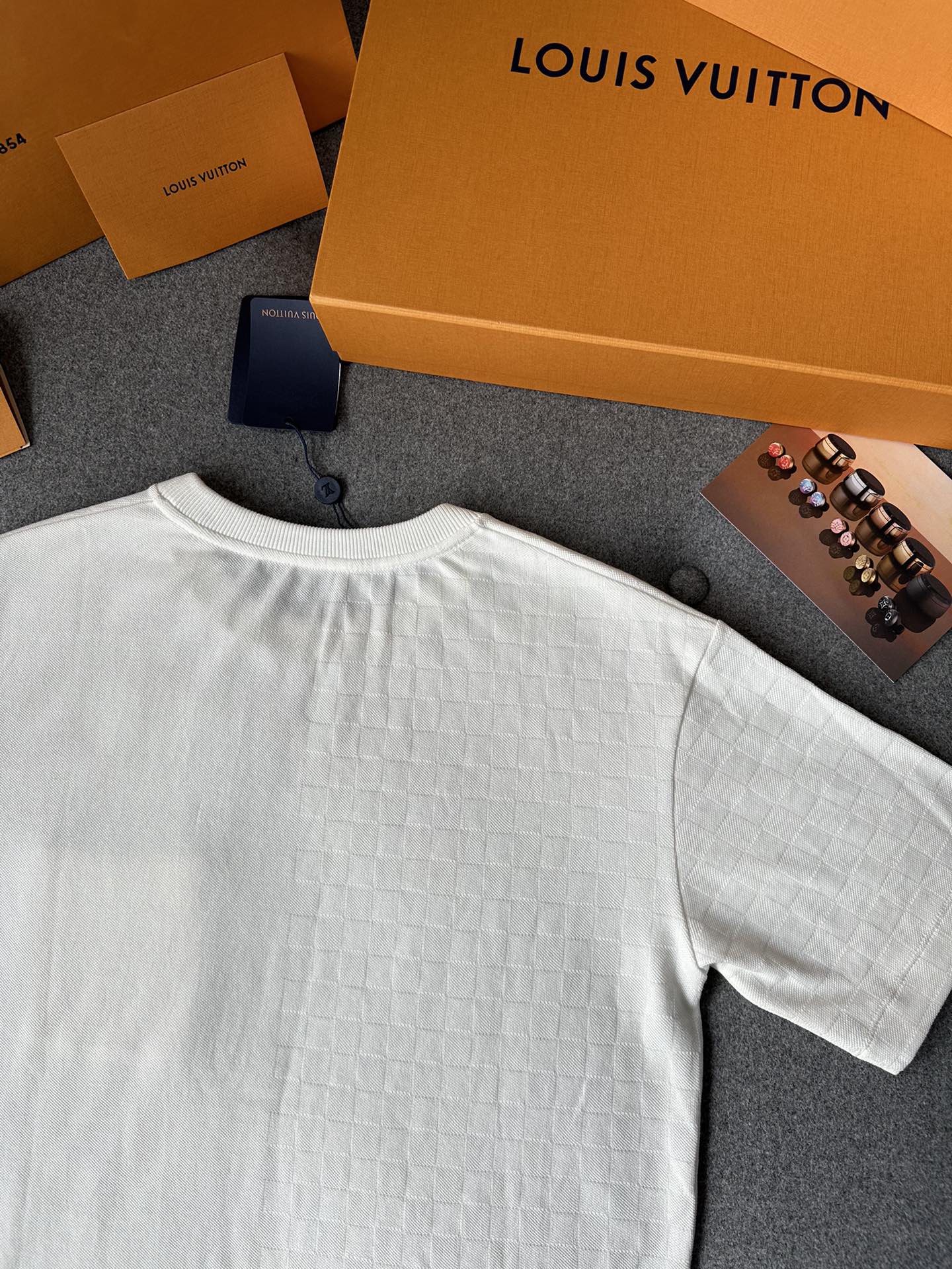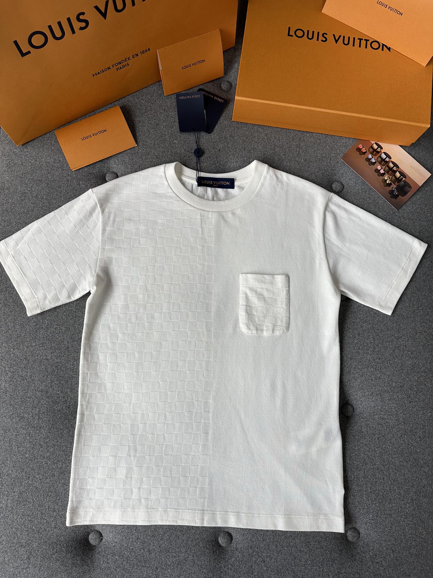 • TJ공장 루이비통 HALF DAMIER 포켓 니트 반팔티 화이트 LOUIS VUITTON