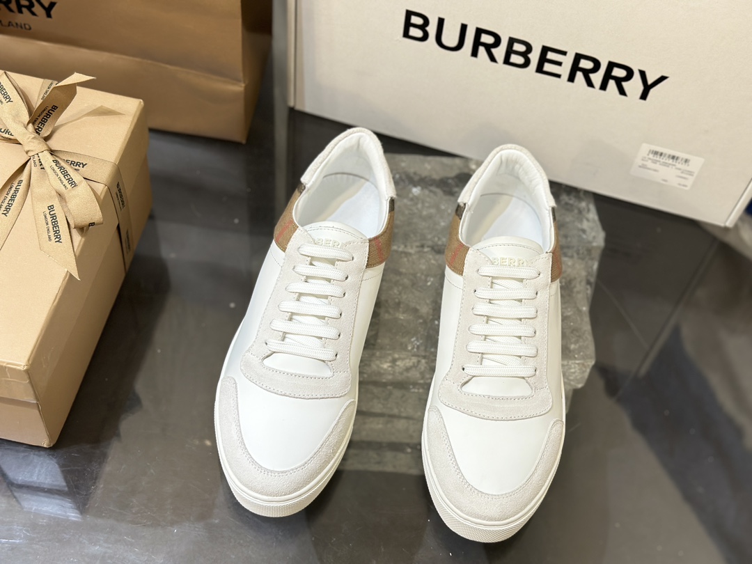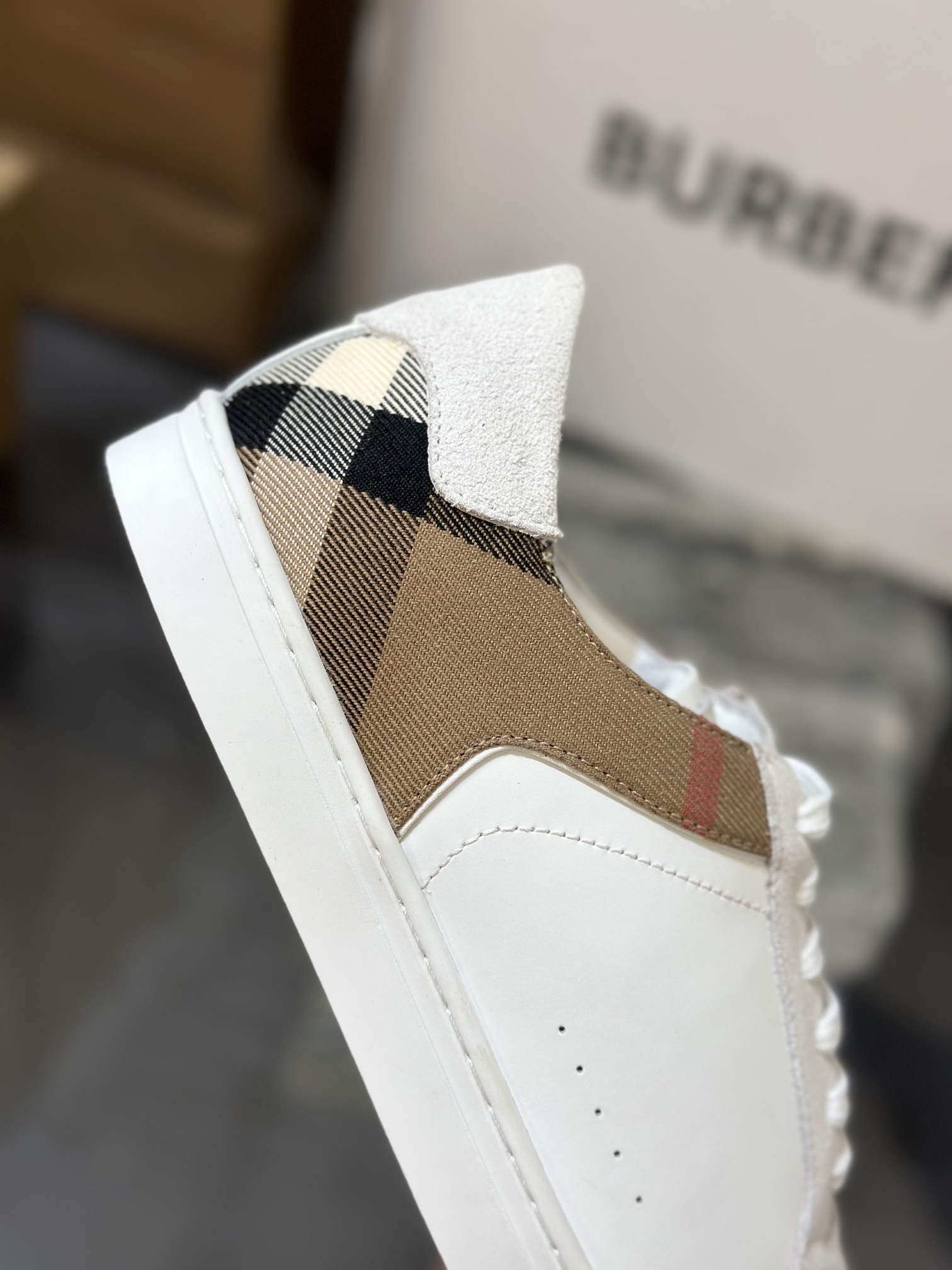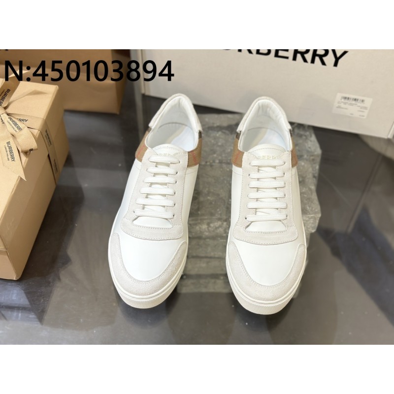 • [152] 버버리 커플 가죽 이음 체크 스니커즈 화이트 burberry