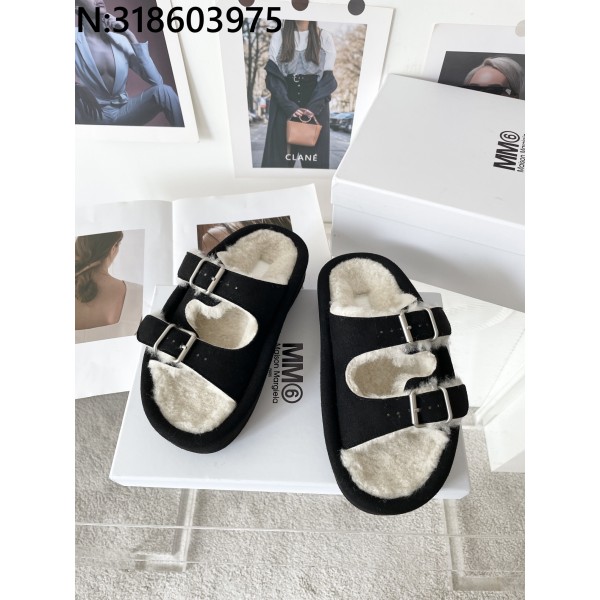 [327] 메종 마르지엘라 더블 벨트 털 슬리퍼 블랙