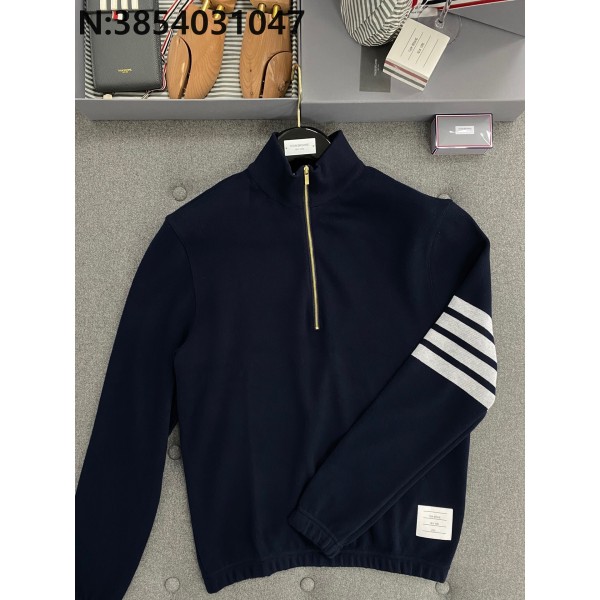 TJ공장 톰브라운 흰색 사선 완장 지퍼 니트 네이비 Thombrowne