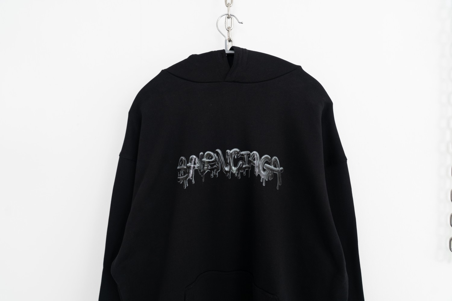 • [사슬공장] 발렌시아가 물방울 모노그램 패턴 후드티 블랙 balenciaga