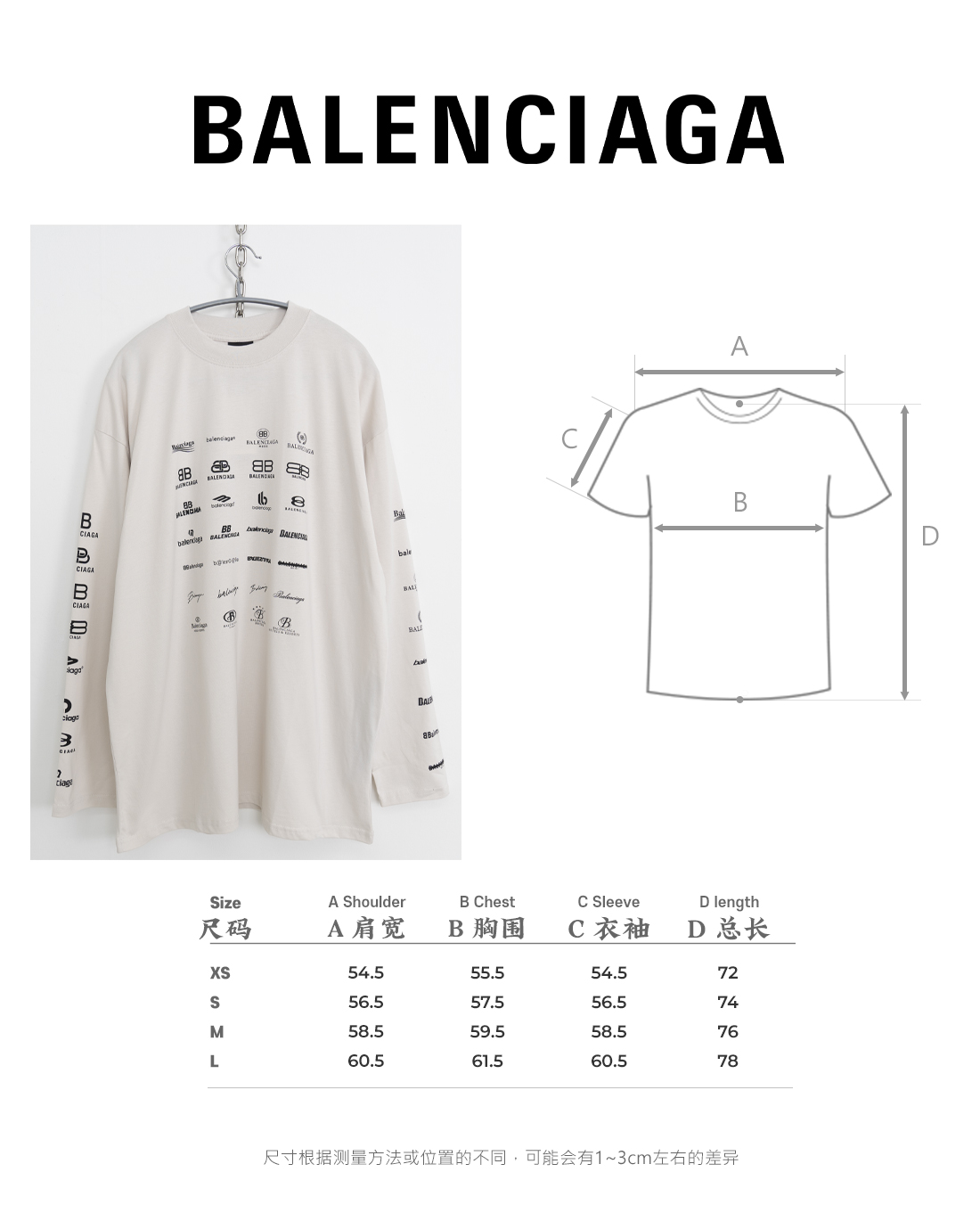 • [사슬공장] 발렌시아가 다양 BB 모노그램 긴팔티 라이트 베이지 balenciaga