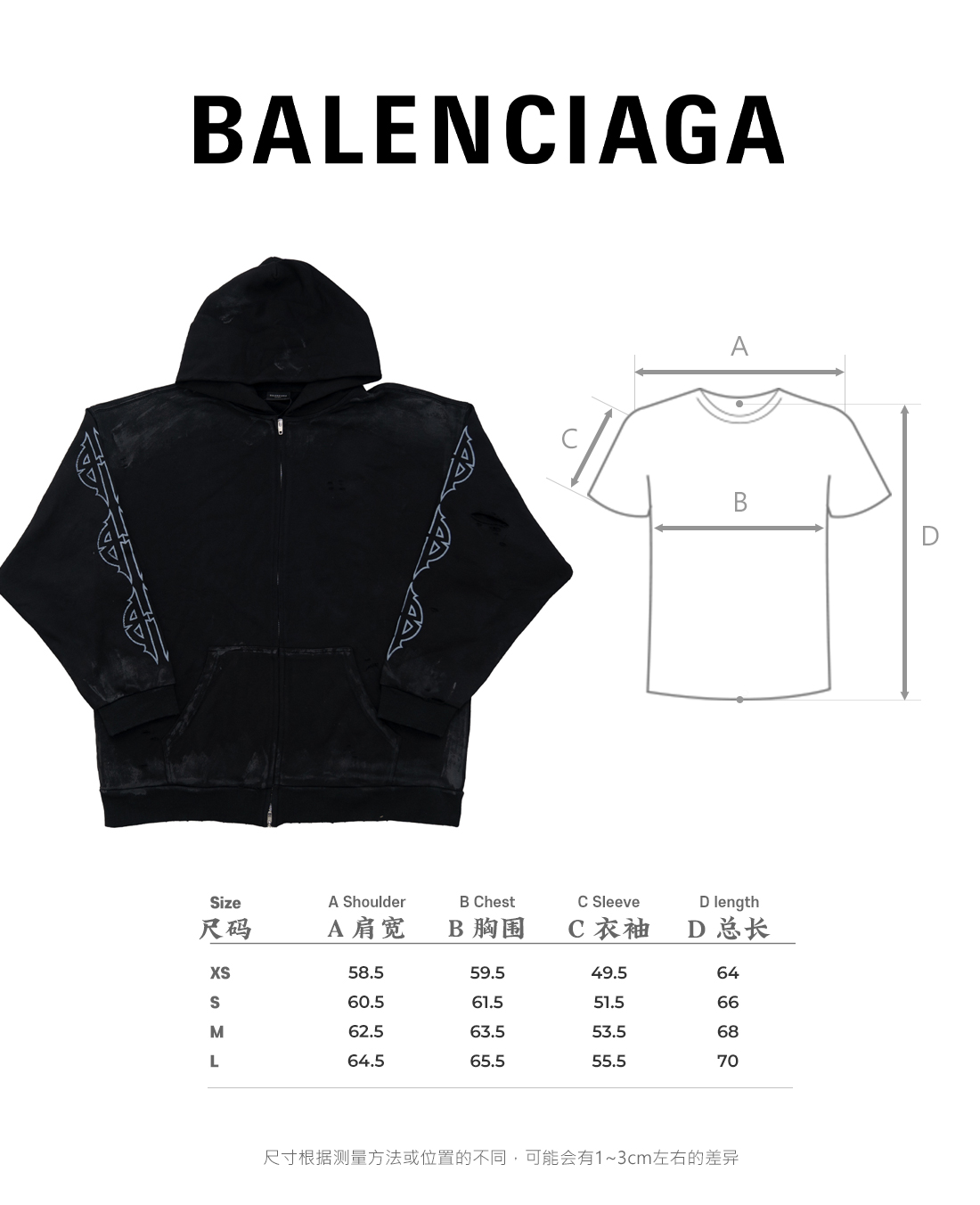 • [사슬공장] 발렌시아가 모노그램 타워 더티 후드집업 블랙 balenciaga