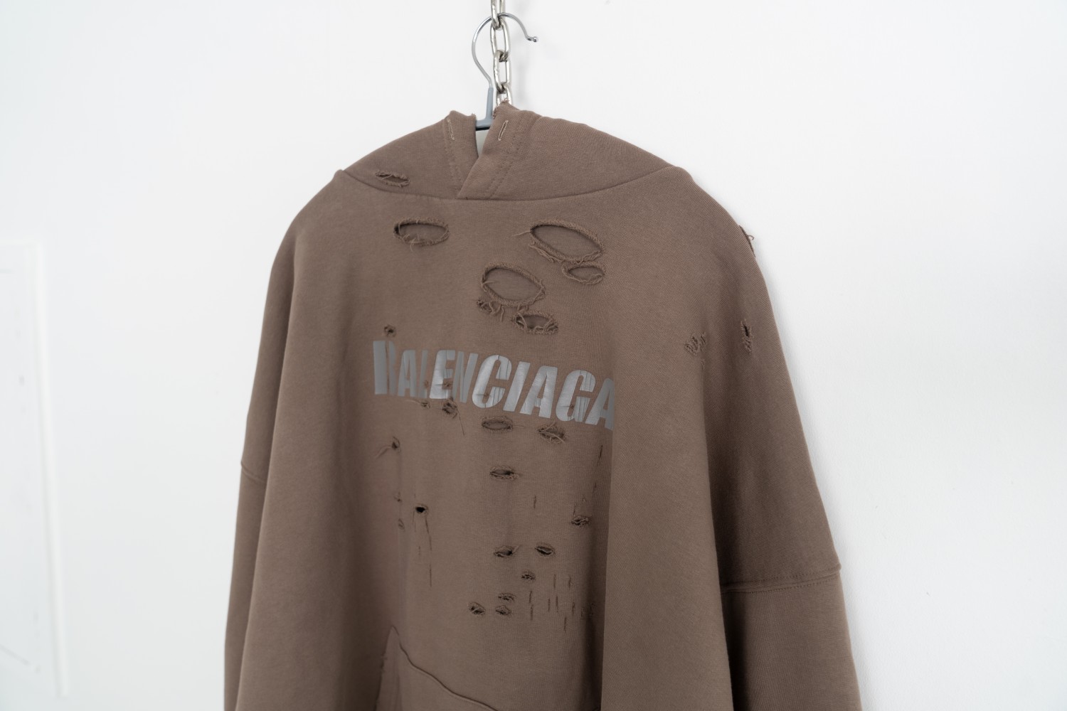 • [사슬공장] 발렌시아가 회색 모노그램 대미지 후드티 브라운 balenciaga