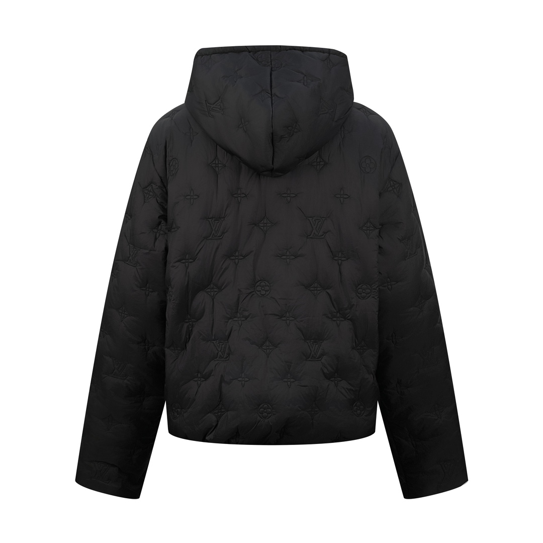 • [잔디집2] 루이비통 모노그램 박음질 면 후드 패딩 블랙  LOUIS VUITTON