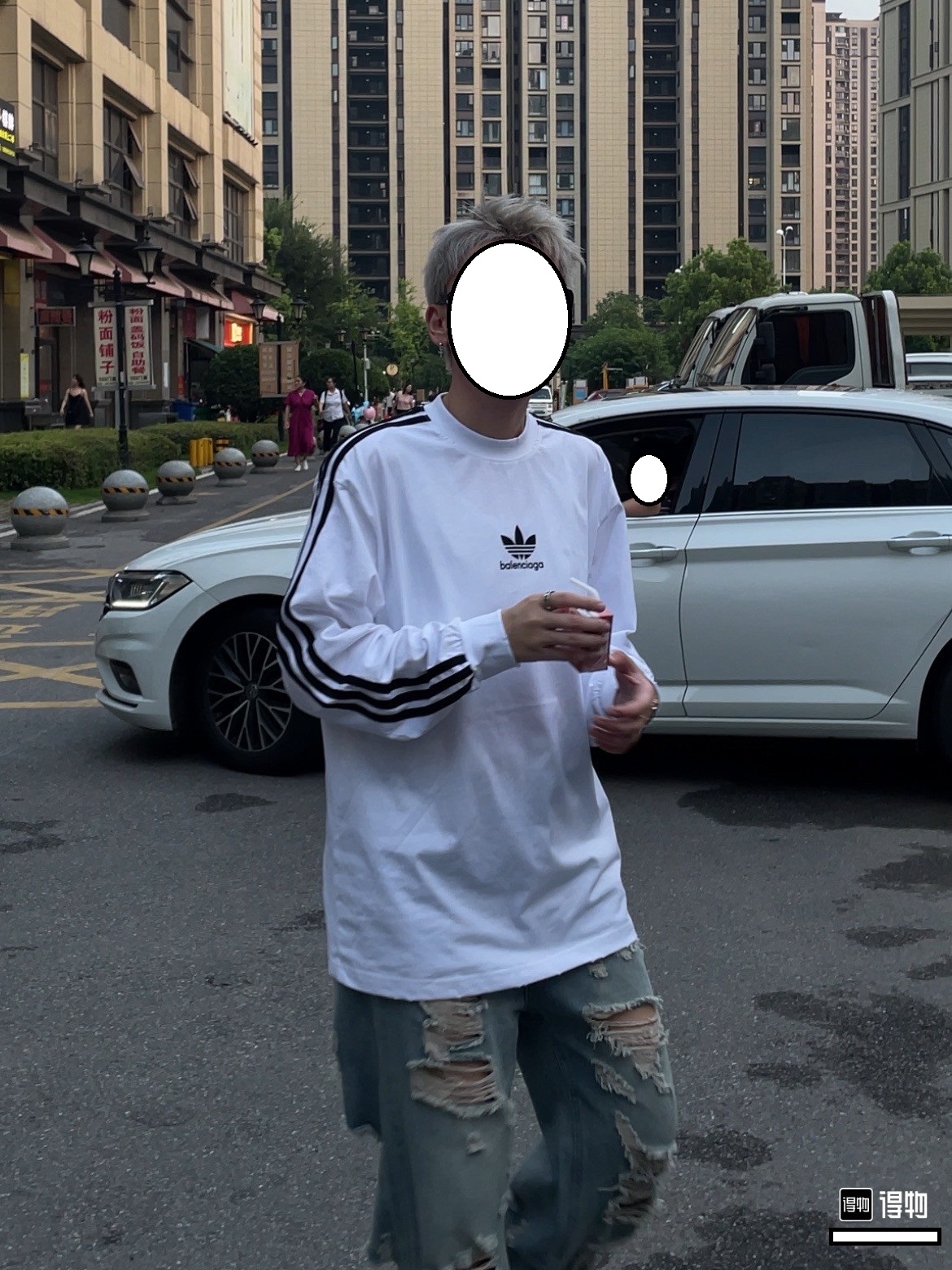 • [사슬공장] 발렌시아가 아디다스 로고 프린트 긴팔티 화이트 balenciaga adidas