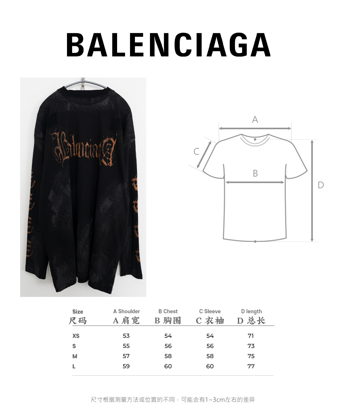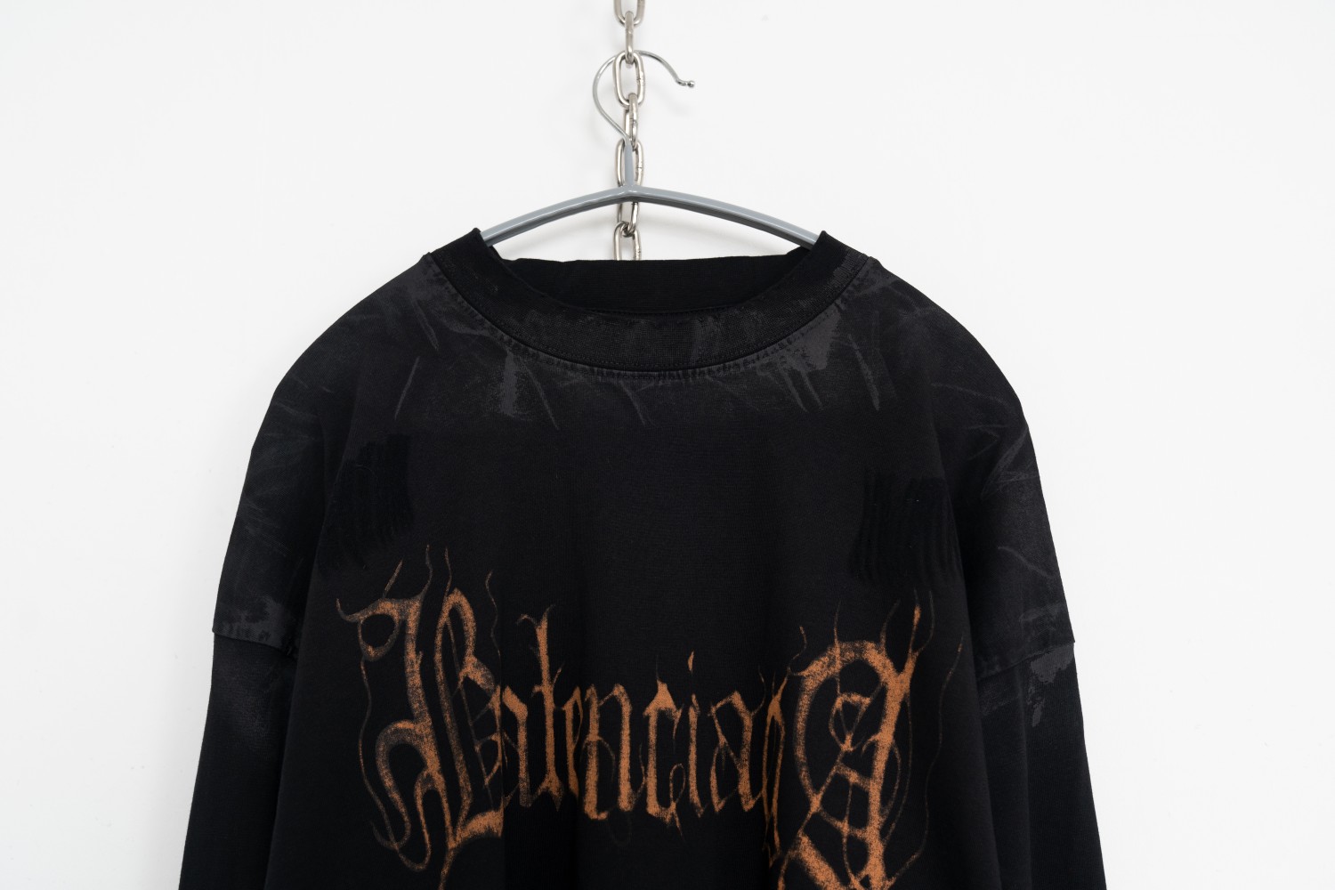 [사슬공장] 발렌시아가 오랜지 범어 모노그램 더티 긴팔티 블랙 balenciaga