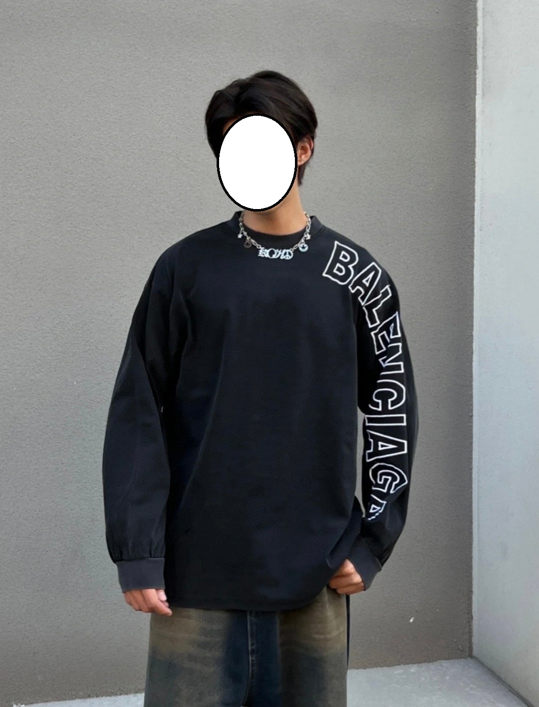 [사슬공장] 발렌시아가 소매 점보 모노그램 자수 워싱 맨태맨 블랙 balenciaga 요약정보 및 구매