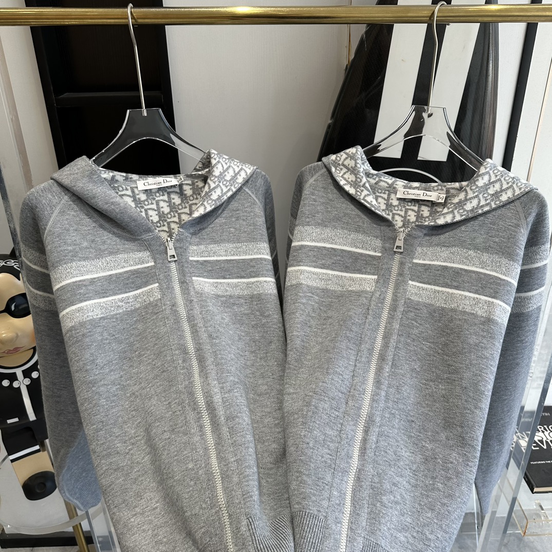 V공장 디올 크리스찬 23FW 캐시미어 오블리크 양면 후드집업 그레이 Dior