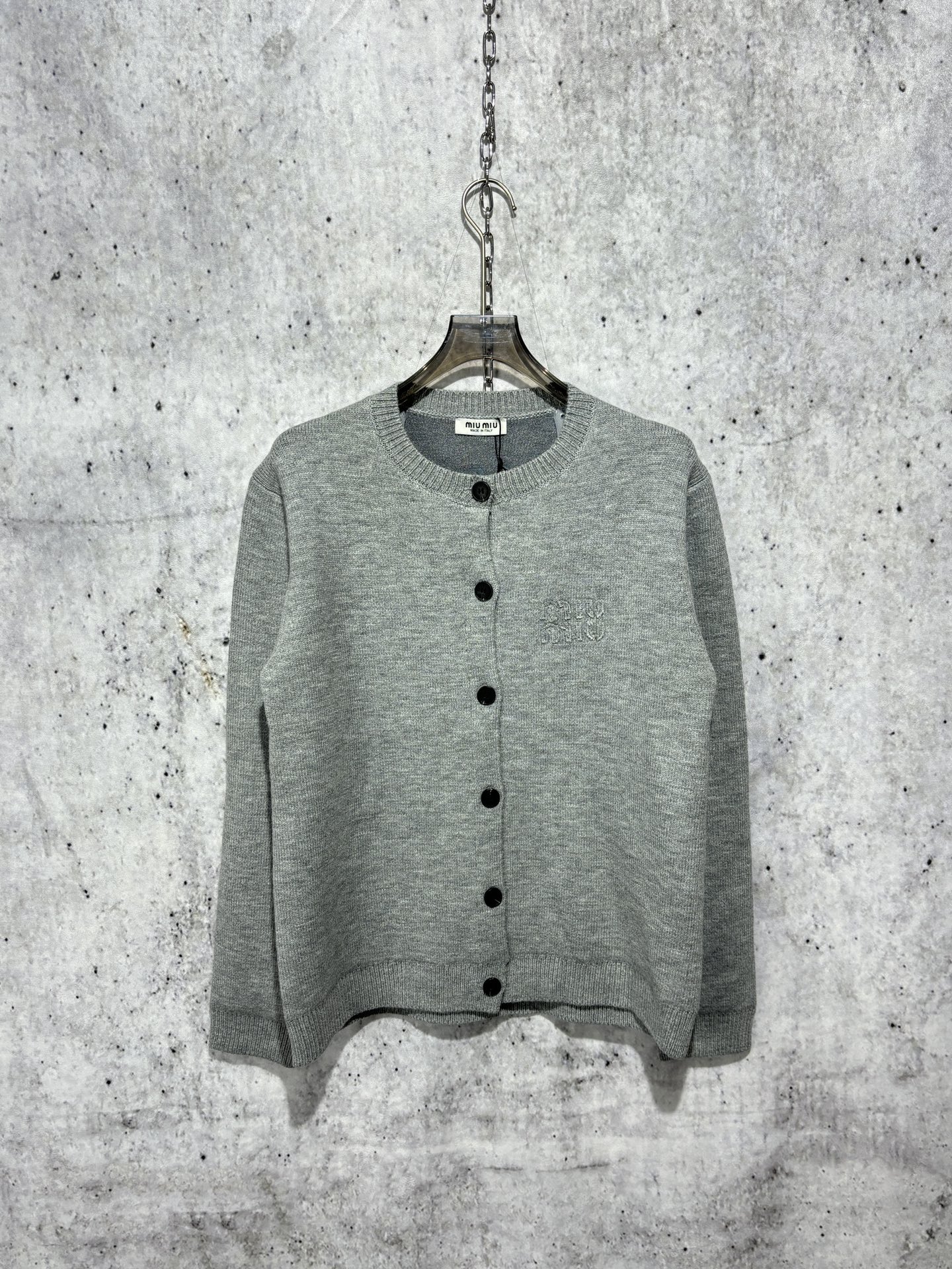 • [사슬공장] 미우미우 모노그램 순색 양털 가디건 그레이 miumiu