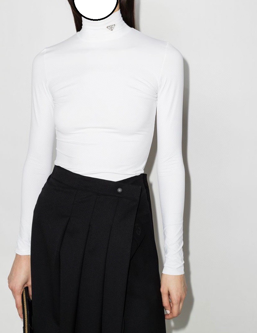 [사슬공장] 프라다 목 삼각형 하이넥 긴팔티 화이트 Prada 요약정보 및 구매