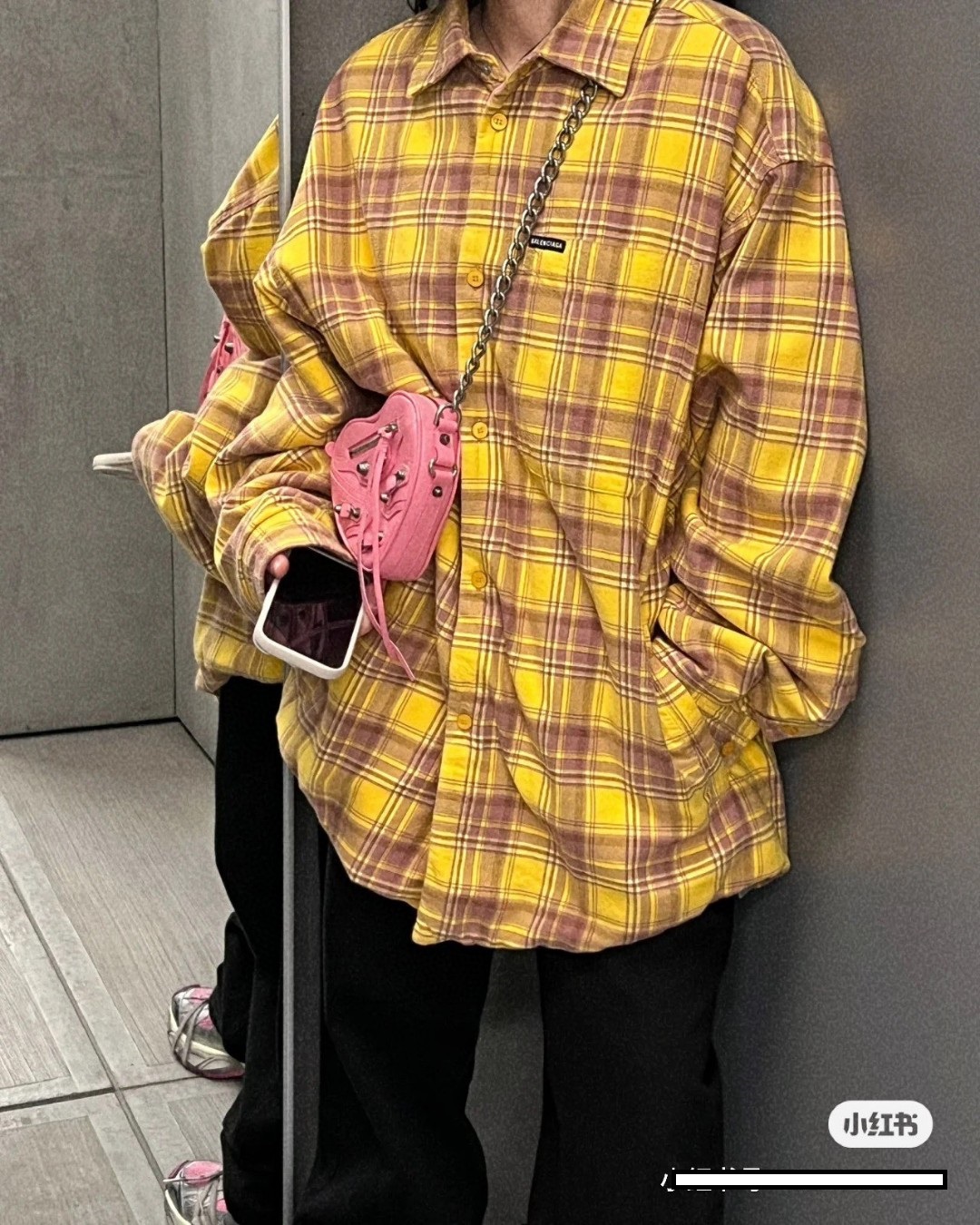 • [사슬공장] 발렌시아가 23FW 옐로우 체크 주머니 긴팔 셔츠 balenciaga