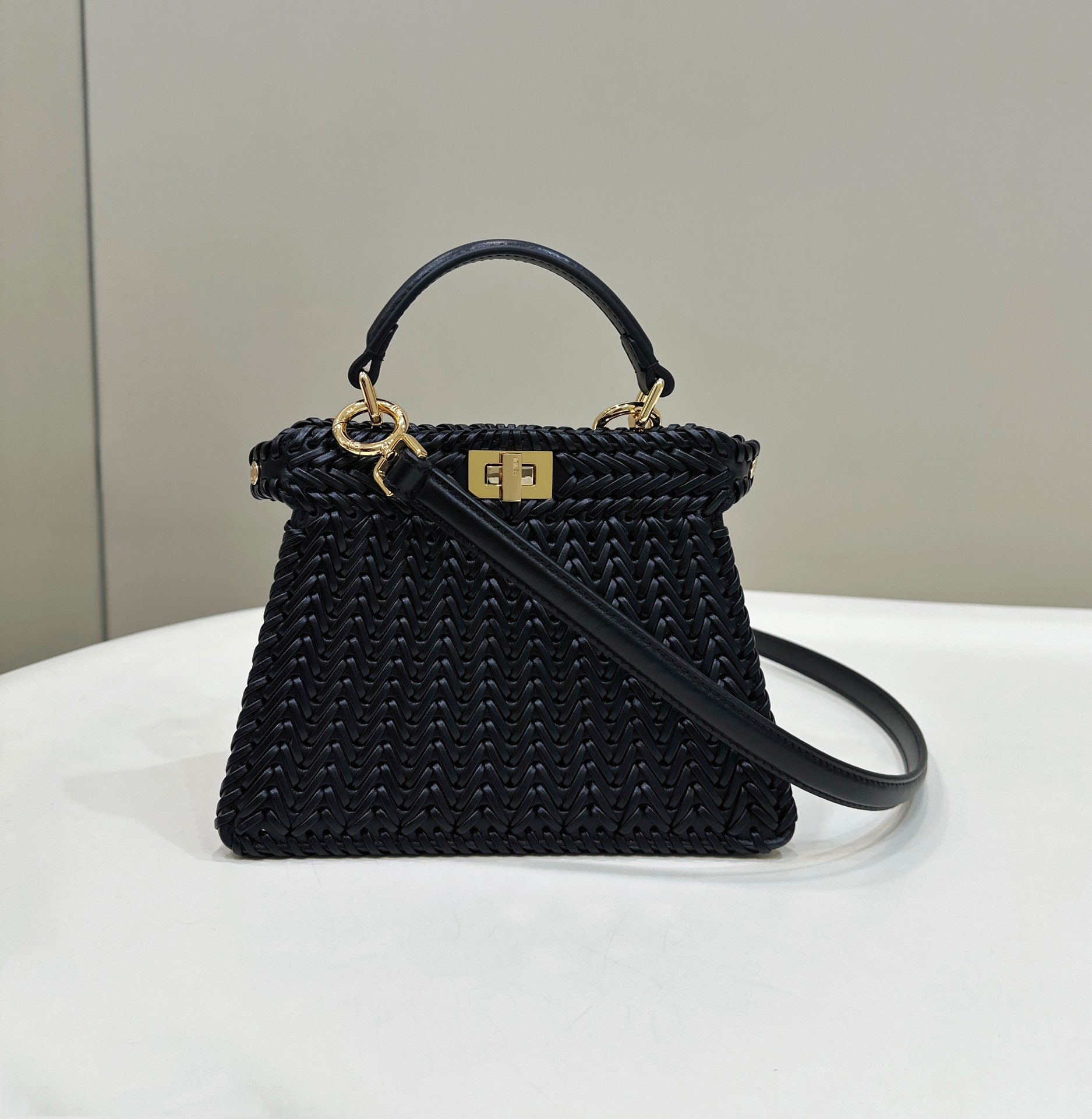 • [니콜] 펜디 피카부 I SEE U 쁘띠 블랙 자카드 인터레이스 가죽 백 20*10.5*15cm 5컬러