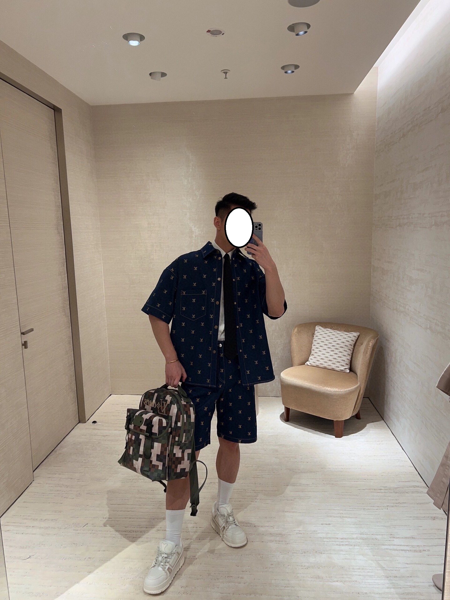 • [사슬공장] 루이비통 24SS LV 자수 데님 반팔 셔츠 블루 LOUIS VUITTON