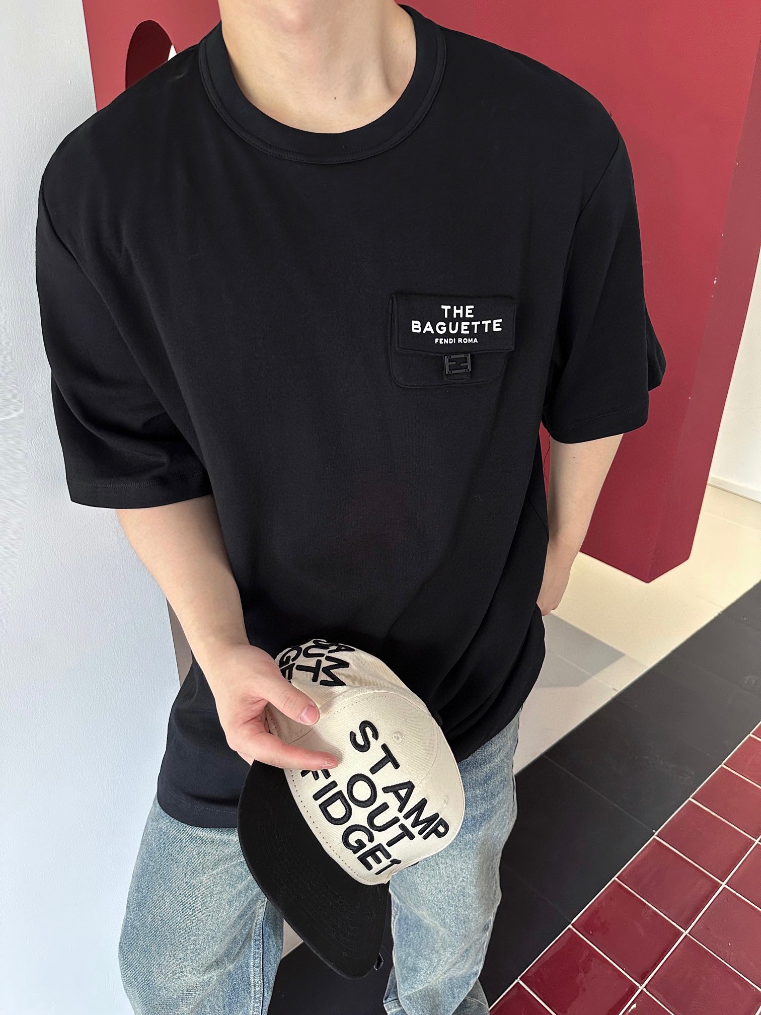 • [사슬공장] 펜디 23SS 포켓 레터링 반팔티 블랙 Fendi