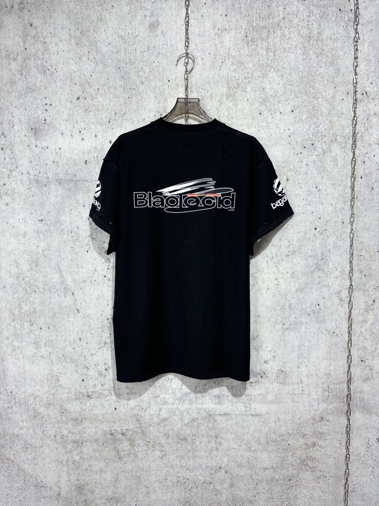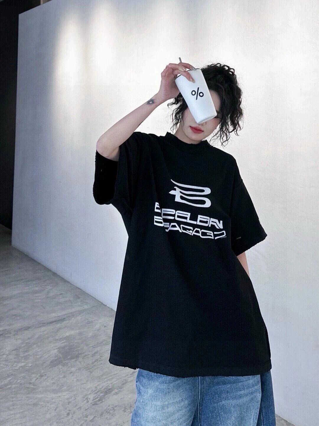 • [사슬공장] 발렌시아가 흰색 B 대미지 루즈핏 크루넥 반팔티 블랙 balenciaga