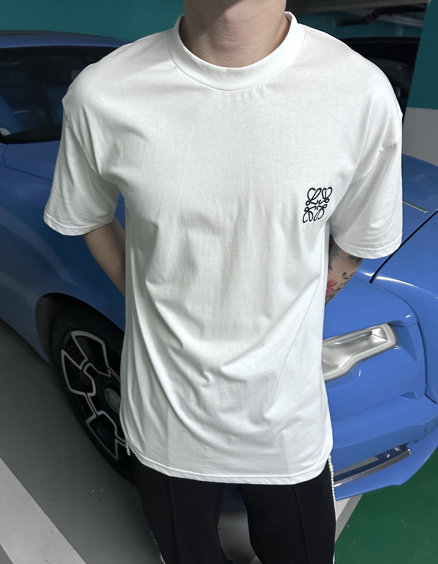 • [잔디집2] 로에베 가슴 검정 로고 자수 반팔티 화이트 Loewe
