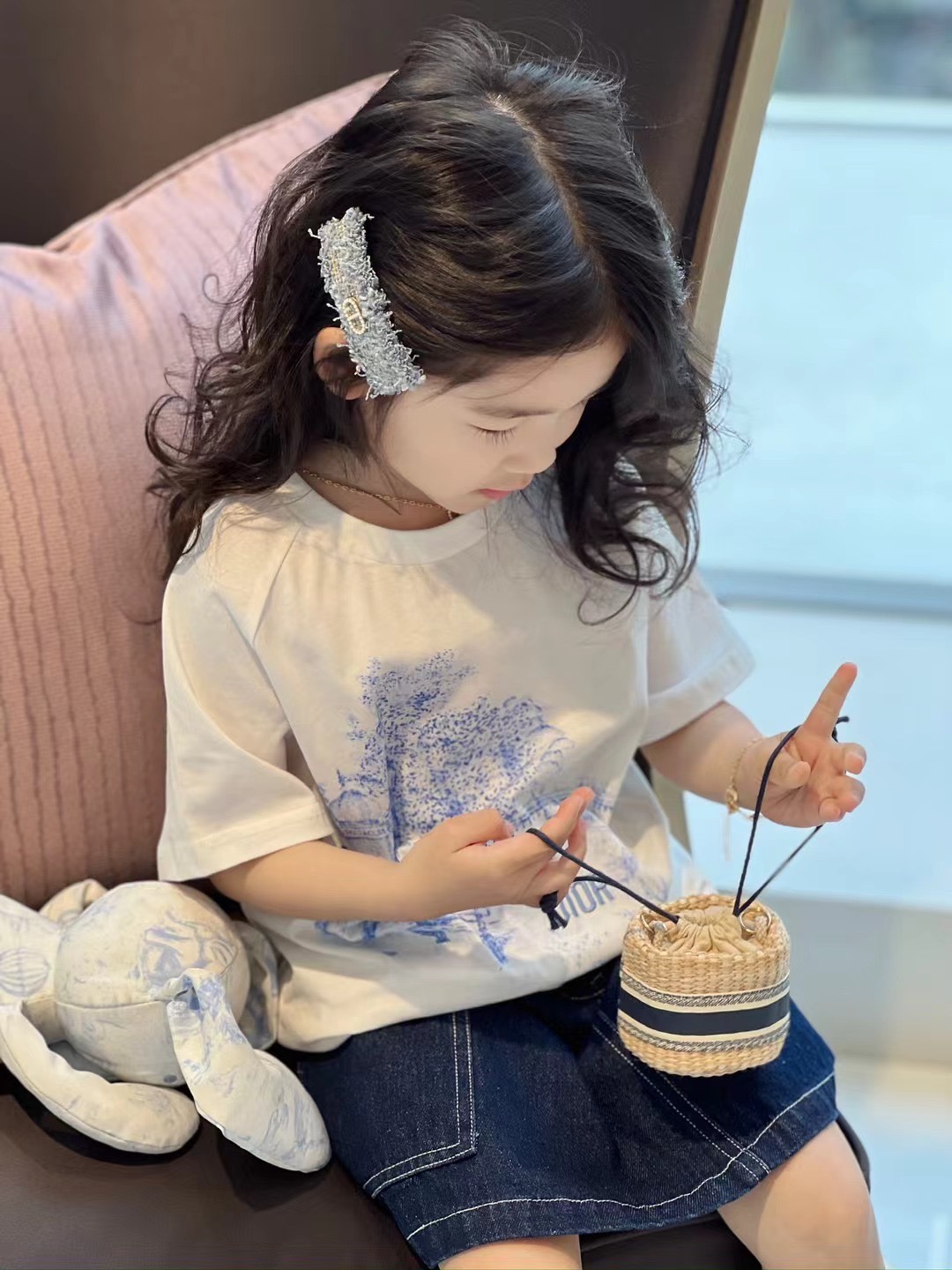 • AC 아동복 크리스찬 디올 빅 프린트 티셔츠 & 데님 스커트 Dior