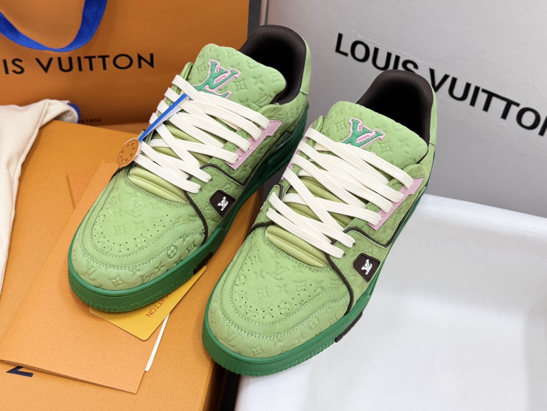 • [152] 루이비통 가죽 54# 각인 모노그램 스니커즈 그린 LOUIS VUITTON