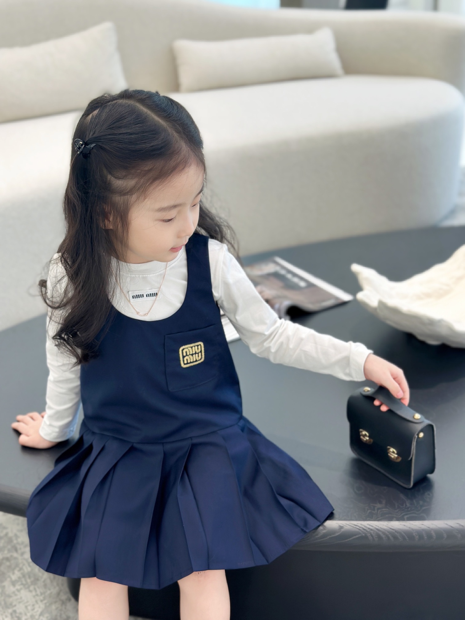 AC 아동복 미우미우 스쿨 이너티셔츠 & 플리츠 패치 나시 스커트 세트 (소량입고) miumiu