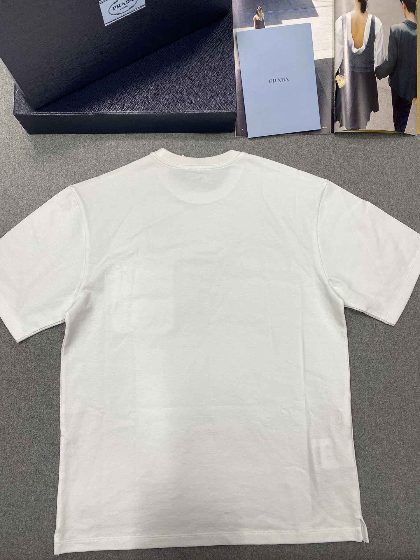 • TJ공장 프라다 24SS 세모 모노그램 베이직 반팔티 화이트 Prada