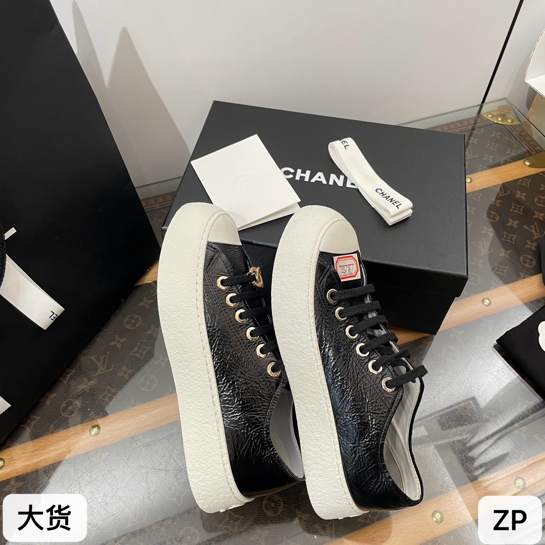 • [DXJ] 샤넬 CC로고 에나멜 스니커즈 블랙 3.5cm Chanel