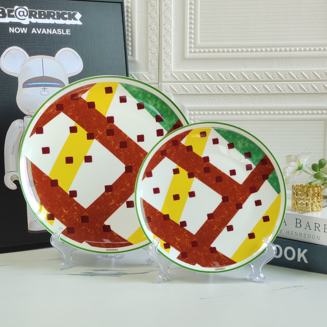 • AGG 에르메스 레드 네모 배색 접시 공예품 2개 세트 Hermes