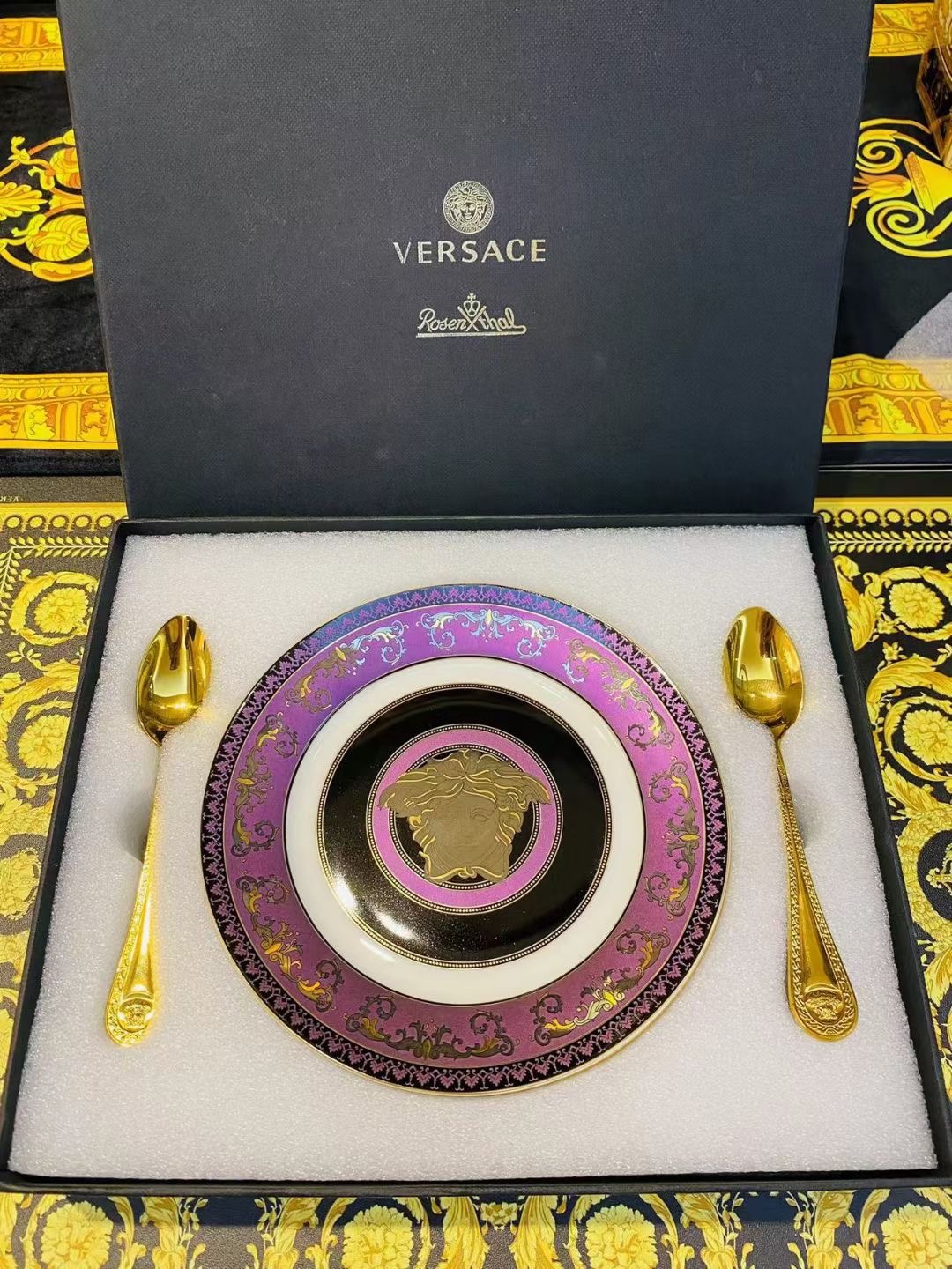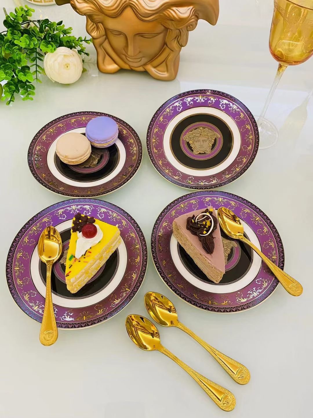 • AGG 베르사체 디저트 케이크 숫가락 접시 세트 4*4개 퍼플